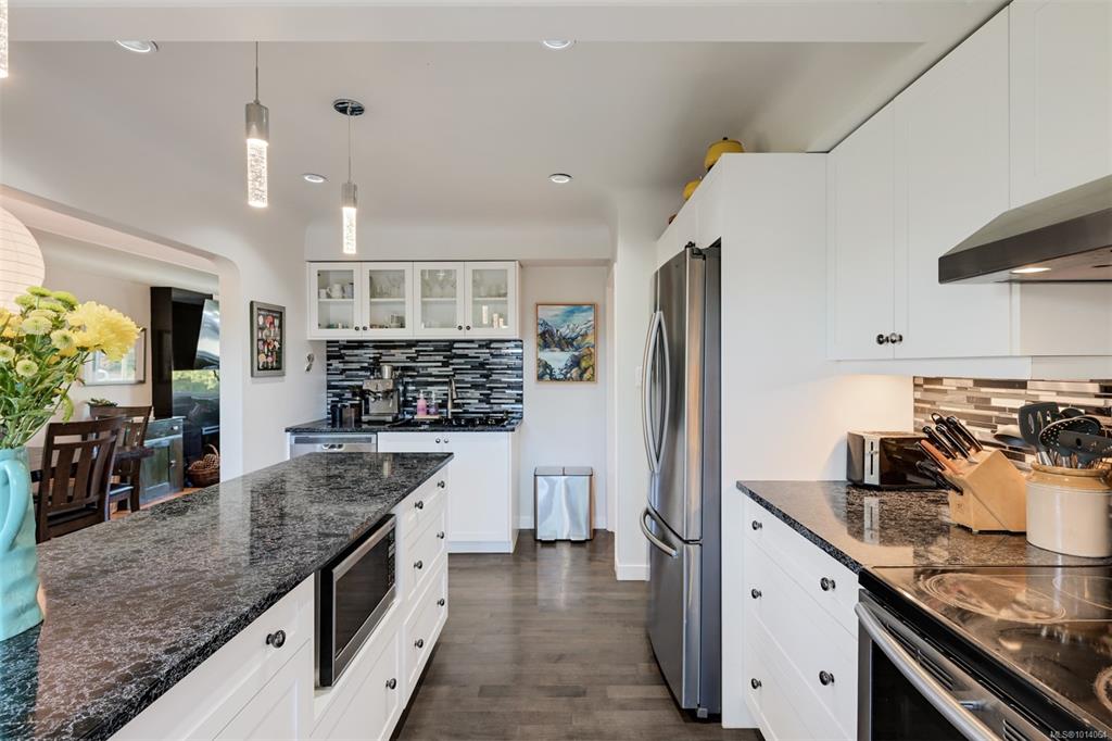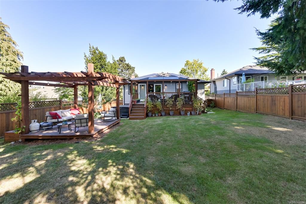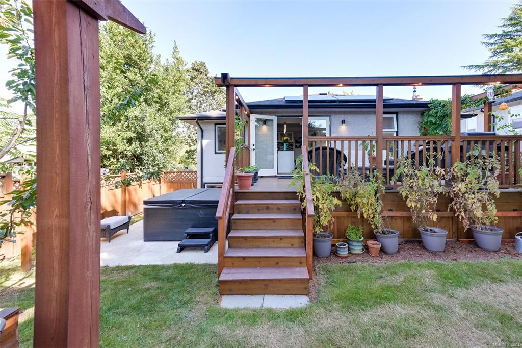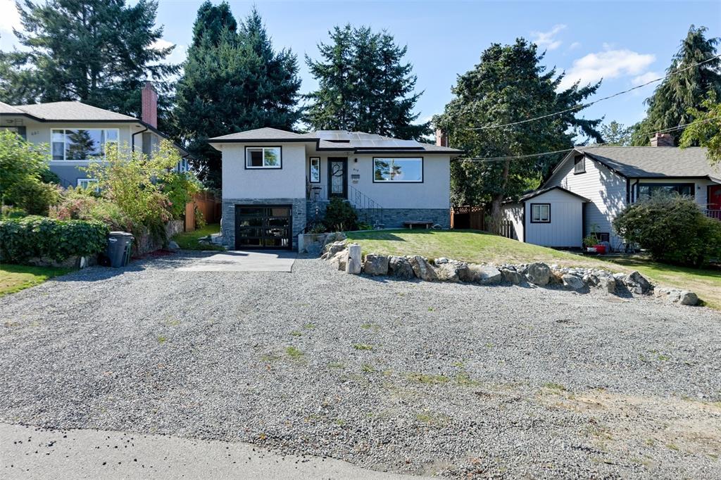 Fully renovated five bedroom two bathroom home with easy suite potential located next to Swan Lake and Lochside Trail! Extensive updates with permits since 2016 include California stucco with slate facade, roof, vinyl windows, new PEX and ABS plumbing, 200 amp electrical, insulation to R50, heat pump for year round comfort and 10.25kW solar system to offset ~80% of electricity. Energuide rating of 31 will save thousands in utility costs! Three bedroom main floor with hardwood floors, chefs kitchen with quar...