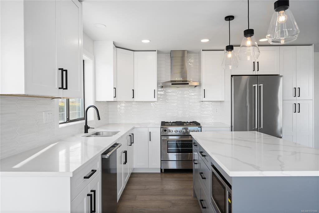 Renovated Ocean View Home in Prestigious North Nanaimo. This modern family home is just steps from Invermere and Blueback Beaches, with all the best urban amenities less than five minutes away. Offering multiple outdoor spaces to enjoy all four West Coast seasons. The main level is open concept with custom kitchen cabinetry, quartz counters and engineered hardwood floors flowing into the living room. There are three bedrooms and 2 renovated bathrooms on the main, including the primary with 3 piece en-suite ...