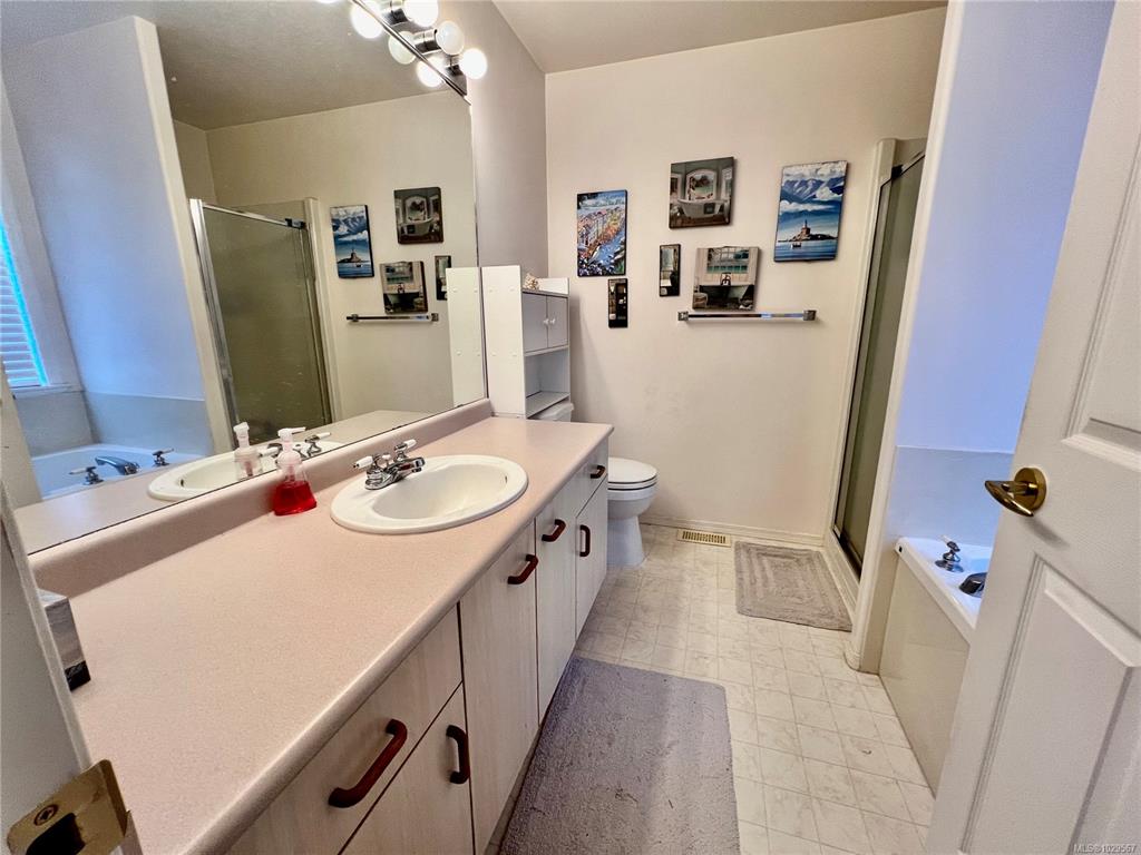 Updated laminate flooring... Just move in & enjoy this immaculate easy care home at popular Songhees Retirement Park. This beautiful 2 bdrm 2 bath home offers vaulted ceilings in the living room, gas FP, spacious kitchen w/ loads of cabinets, separate dining room, family room & great separation of the two bedrooms with a full ensuite in the master. Upgrades include newer laminate in kitchen, custom concrete patios, and fencing to name a few. The complex has great community spirit w/ organized card games, b...
