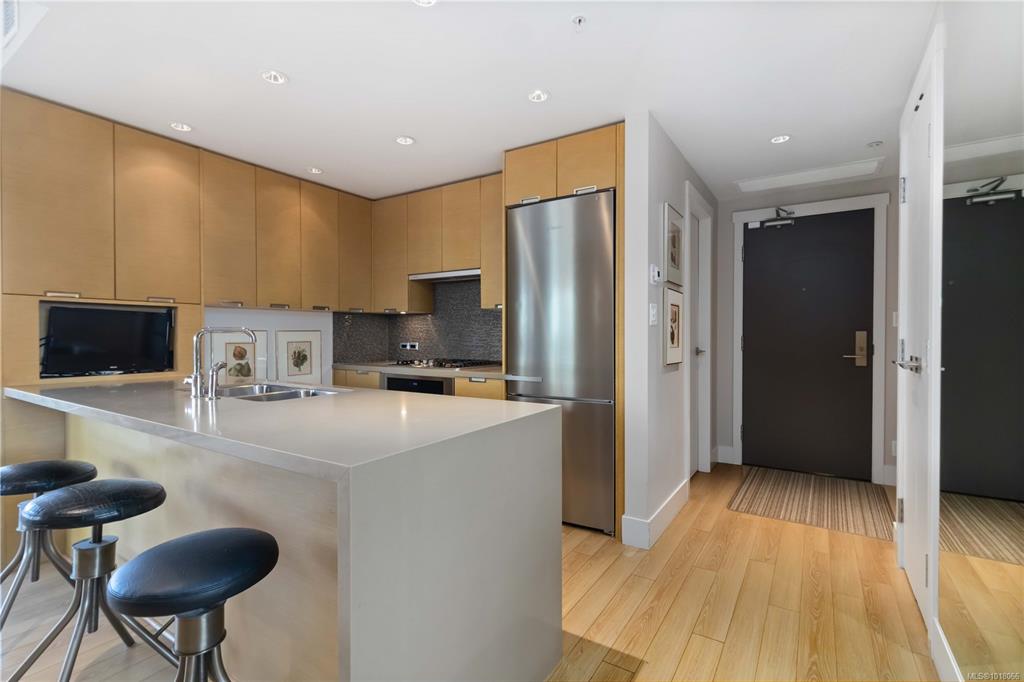 Discover one of the most exclusive homes at The Promontory, nestled within Bayview Place. This contemporary steel and concrete high-rise is situated in the vibrant heart of the Victoria West waterfront. This property has a unique and EXCLUSIVE 1,200 sq. ft. private terrace offering panoramic views of the inner and outer harbour, along with the Olympic Mountains — an ideal setting for hosting summer gatherings. Complete with a hot tub, outdoor fire pit, natural gas BBQ hook up and irrigation this stunning ou...