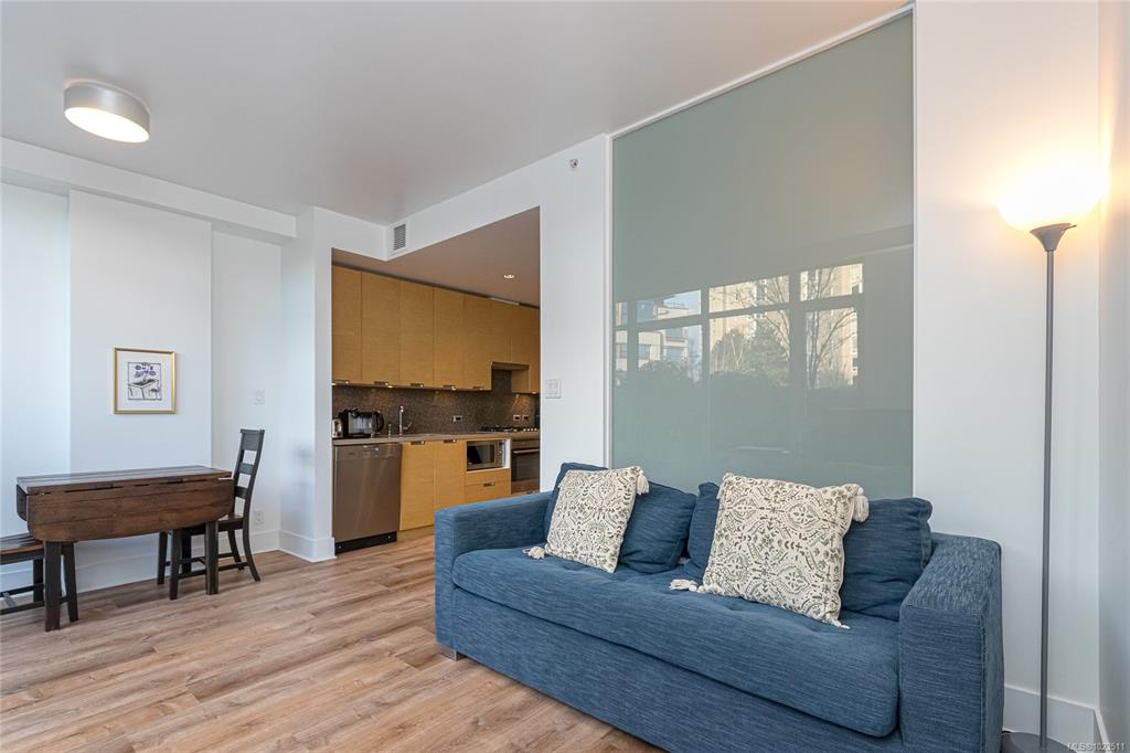Promontory by Bosa offers this well-designed ground-floor one-bedroom home overlooking the peaceful garden courtyard. Featuring 482 sq ft of interior space and an impressive 218 sq ft private patio, this unique residence showcases floor-to-ceiling windows and seamless indoor-outdoor living—perfect for BBQs or entertaining. The sleek galley kitchen is equipped with premium Miele and Electrolux appliances within an open-concept layout ideal for first-time buyers, investors, or a stylish pied-à-terre. Exceptio...