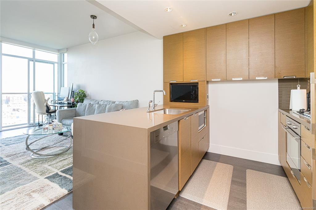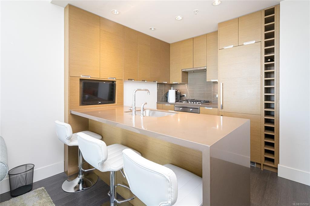 “Promontory” by Bosa where luxury & comfort come together. This well appointed condo offers designed living spaces, perfect for those seeking an urban lifestyle. The kitchen has high-end appliances incl. a gas cooktop, integrated Miele fridge/freezer, TV hook up & a stacking washer/dryer. Enjoy views of downtown & Inner Harbour from your private balcony, living room & bedroom. A generous in-suite storage room provides exceptional flexibility & could function as a private home office. Additional highlights i...