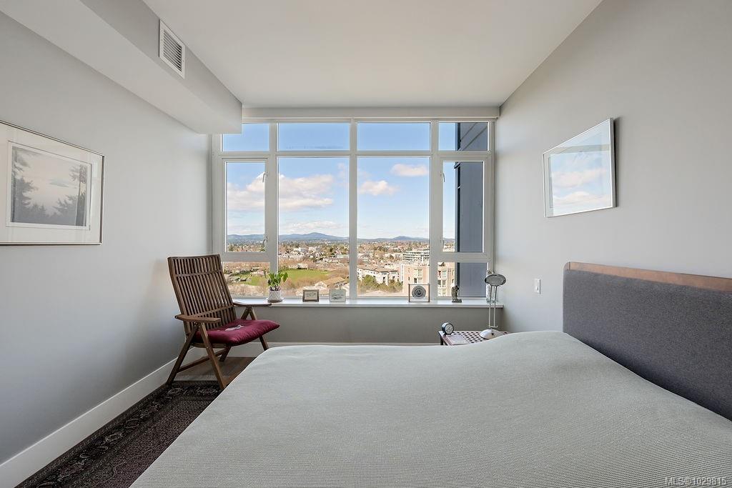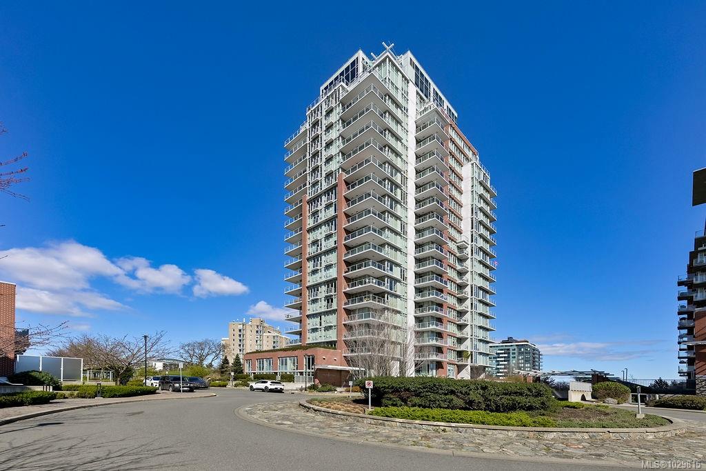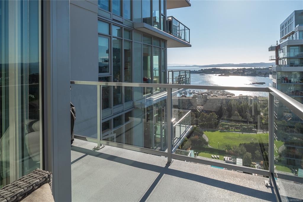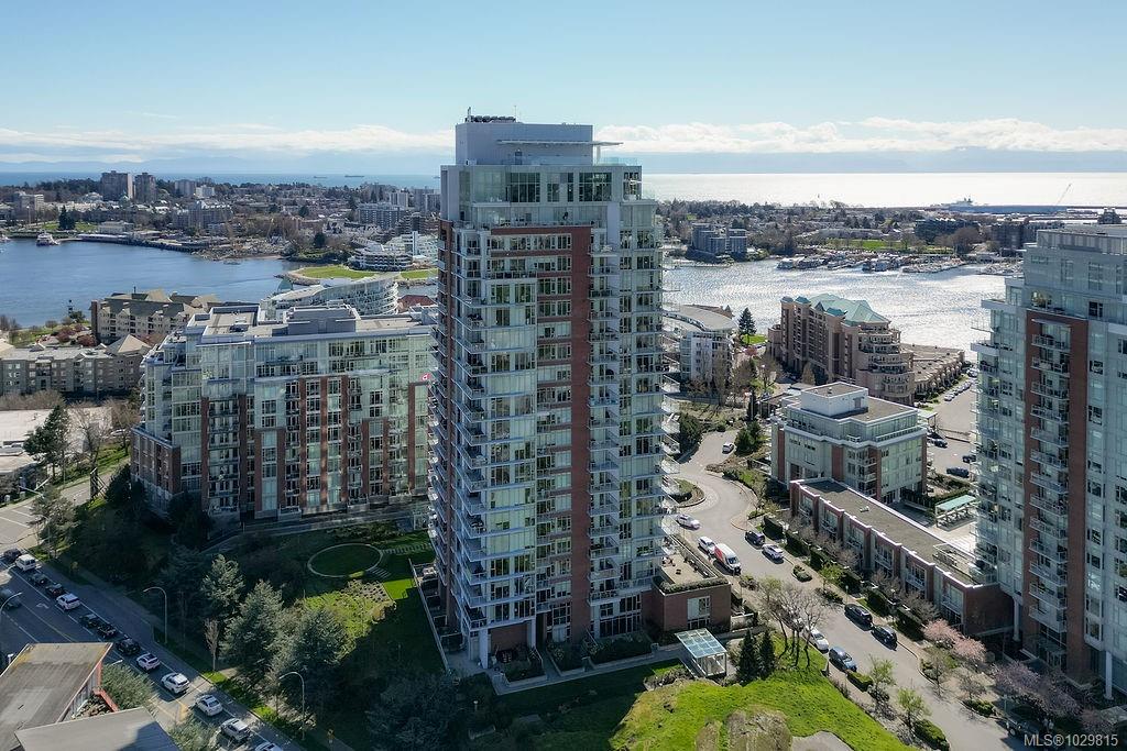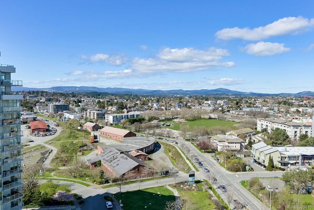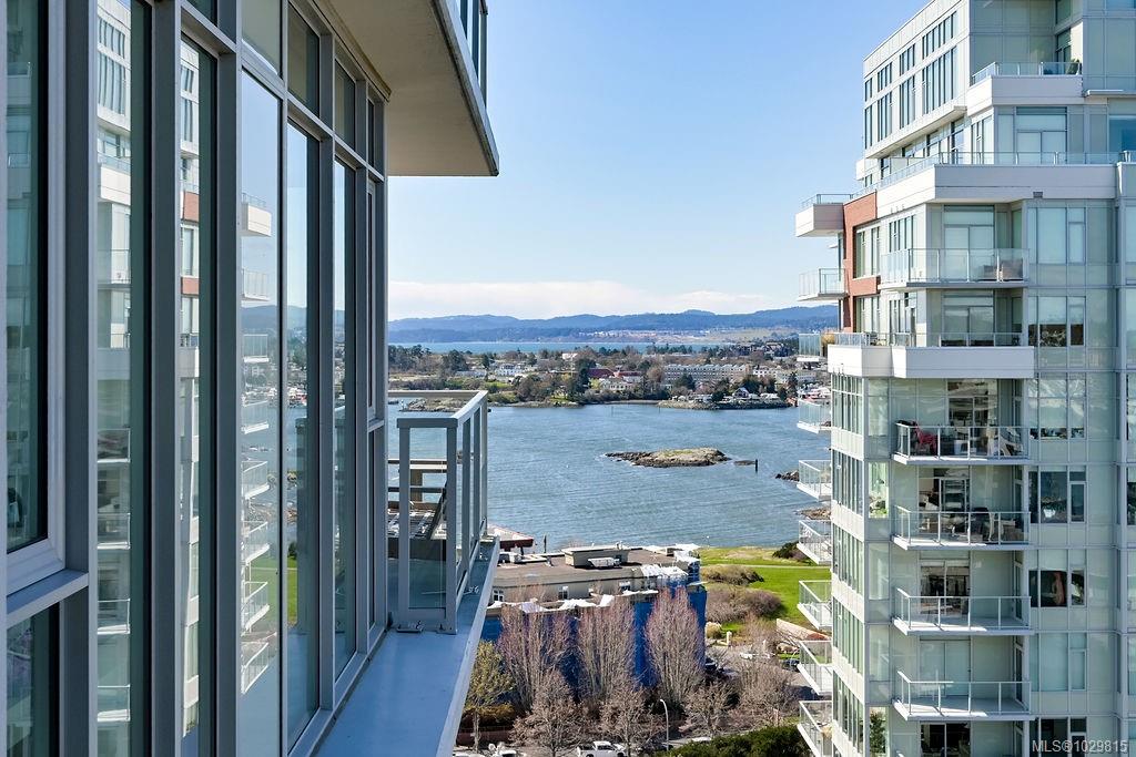 Promontory, by Bosa Properties. Set on the 14th floor, this well appointed 2 bedroom, 2 bathroom home offers expansive views across the Outer Harbour, Olympic Mountains and Sooke Hills with incredible sunsets through expansive floor-to-ceiling windows. The bright, open concept living space flows out to a spacious balcony, perfect for entertaining or bbq'ing. The kitchen is finished with quality, top-of-the-line appliances, a gas cooktop, stone countertops, and soft-closing cabinetry. The primary suite boast...