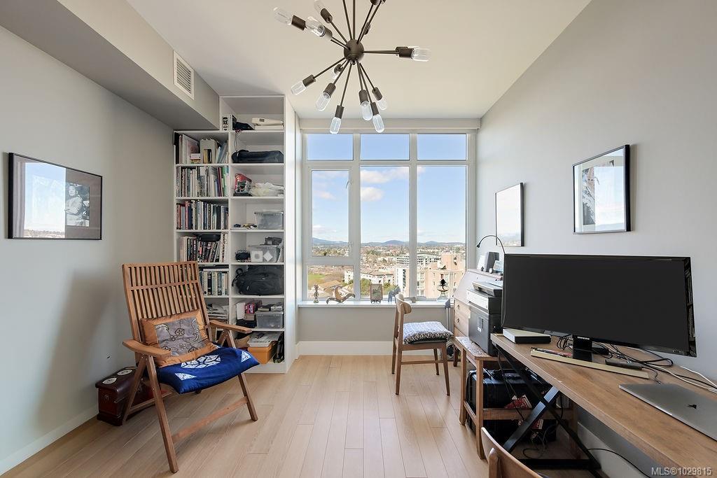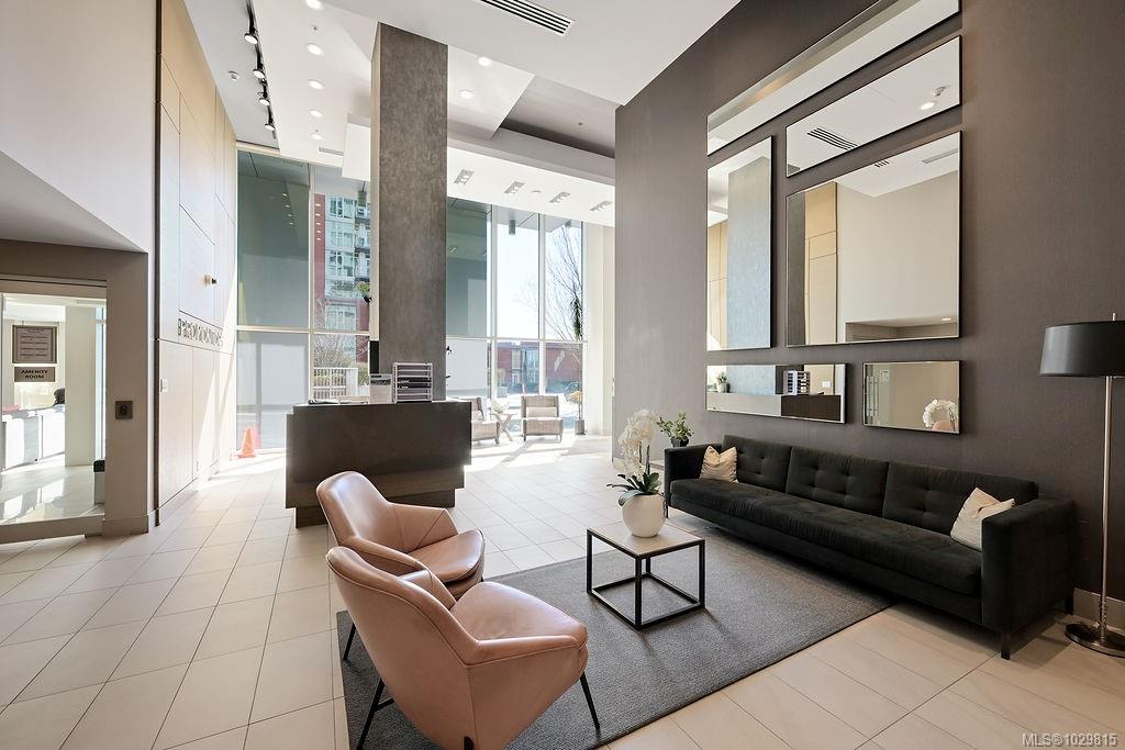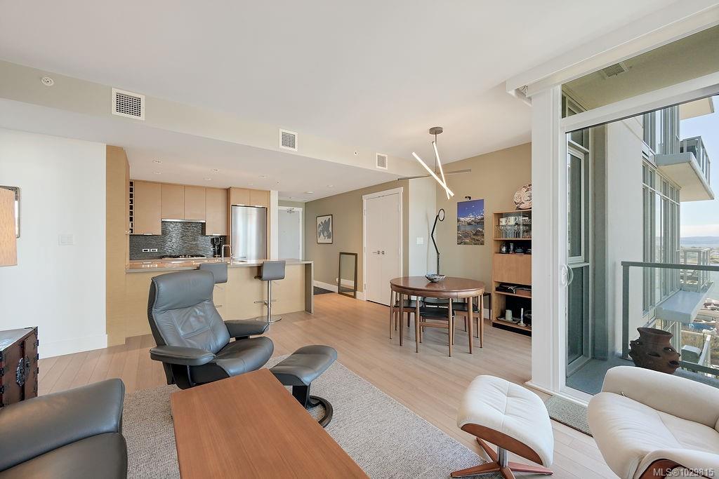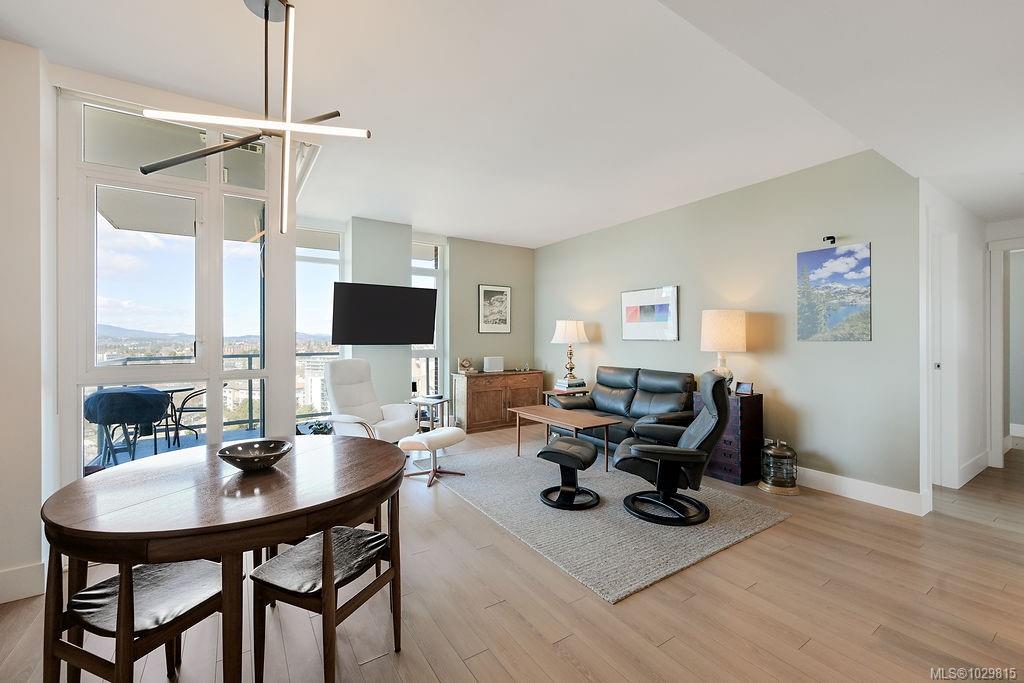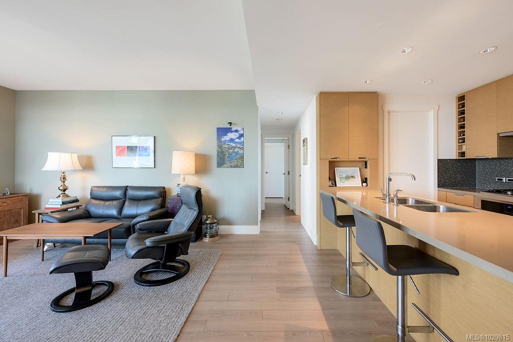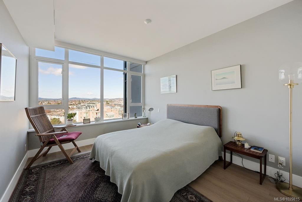 Promontory, by Bosa Properties. Set on the 14th floor, this well appointed 2 bedroom, 2 bathroom home offers expansive views across the Outer Harbour, Olympic Mountains and Sooke Hills with incredible sunsets through expansive floor-to-ceiling windows. The bright, open concept living space flows out to a spacious balcony, perfect for entertaining or bbq'ing. The kitchen is finished with quality, top-of-the-line appliances, a gas cooktop, stone countertops, and soft-closing cabinetry. The primary suite boast...