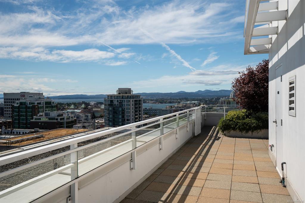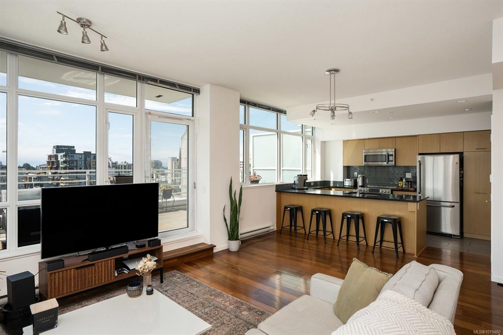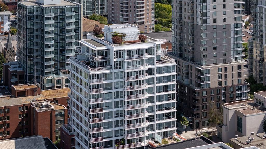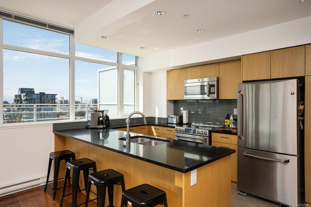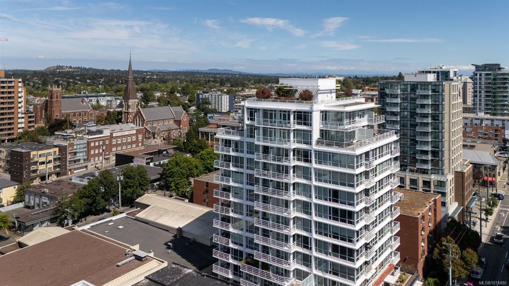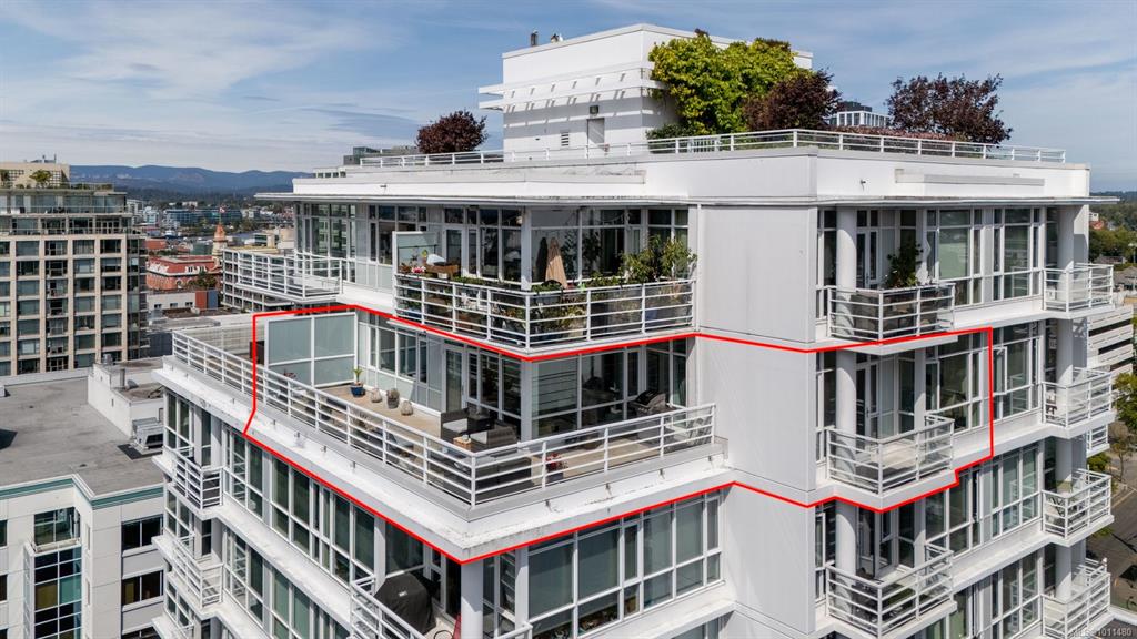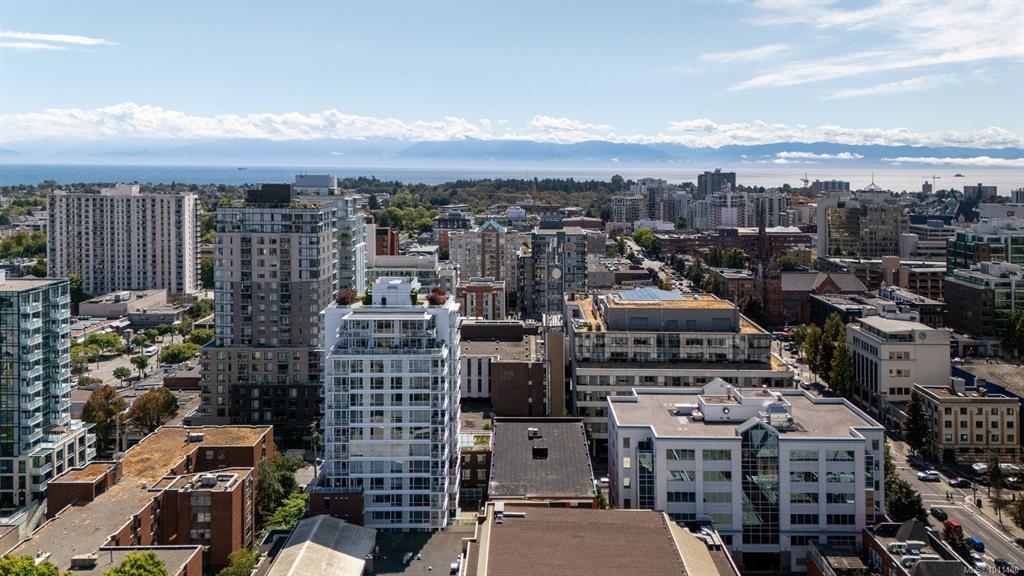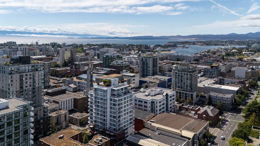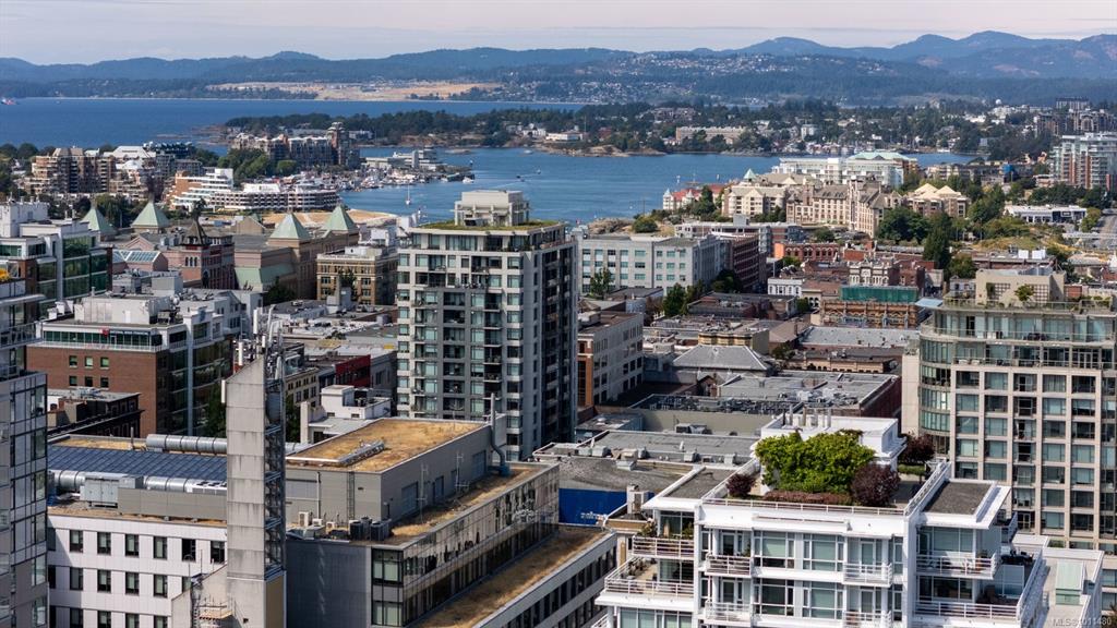 Experience elevated living in this stunning corner-unit sub penthouse in a quality steel-and-concrete building in downtown Victoria. This 14th-floor, 2-bedroom, 2-bath home offers 9-ft ceilings, floor-to-ceiling windows & sweeping views of downtown, the Strait of Juan de Fuca & the Olympic Peninsula. The chef’s kitchen features quartz countertops, stainless steel appliances, a glass tile backsplash, a generous pantry & built-in desk/drink station. The primary suite is a spa-like retreat with a walk-in show...