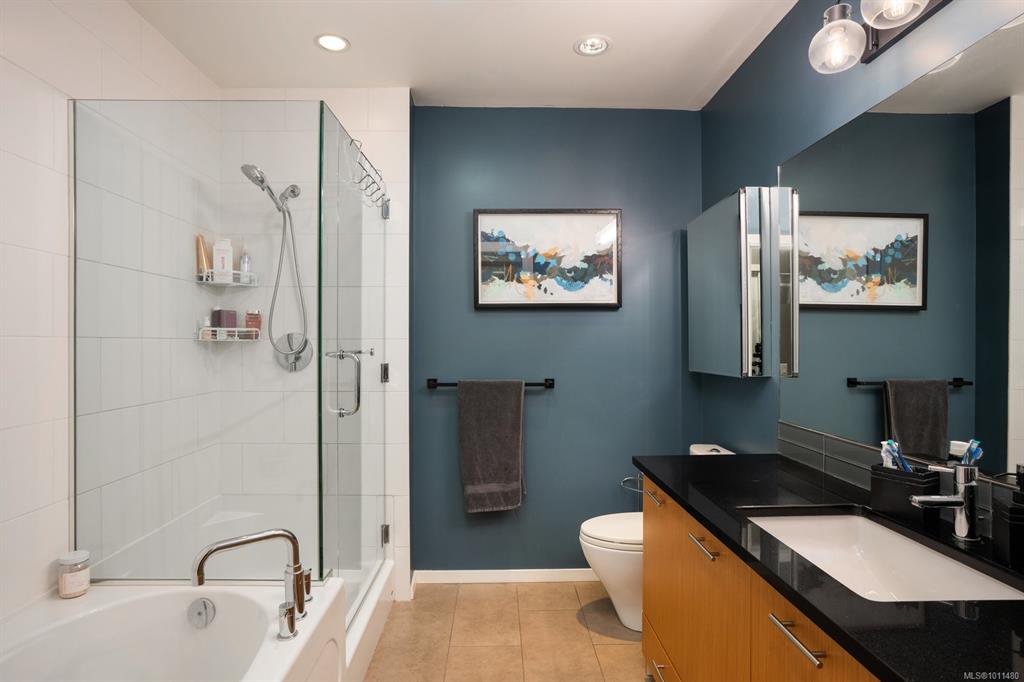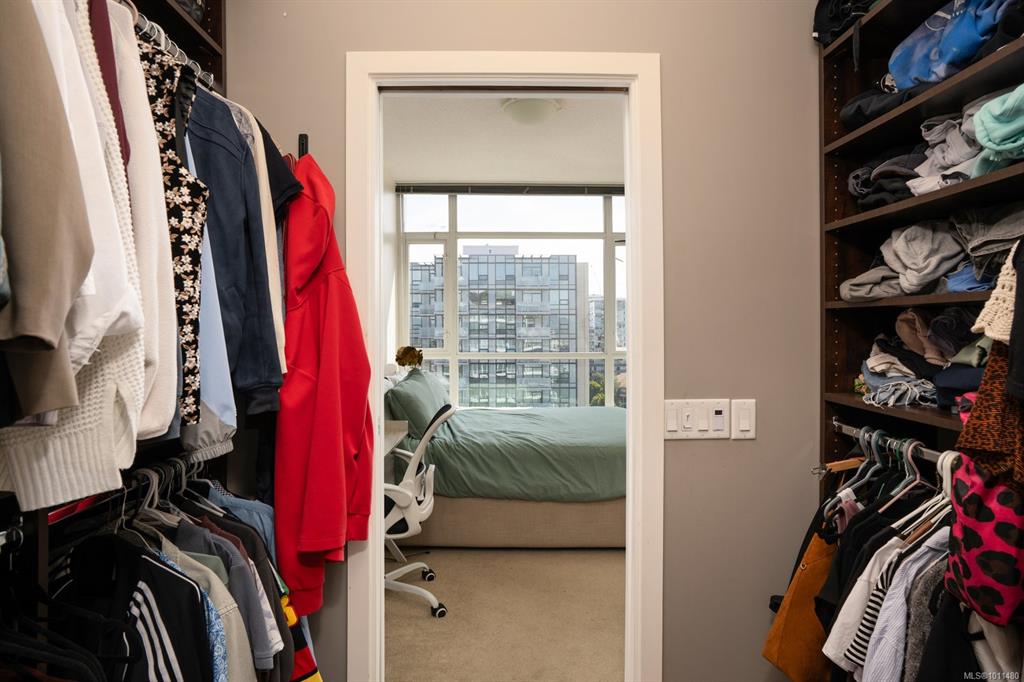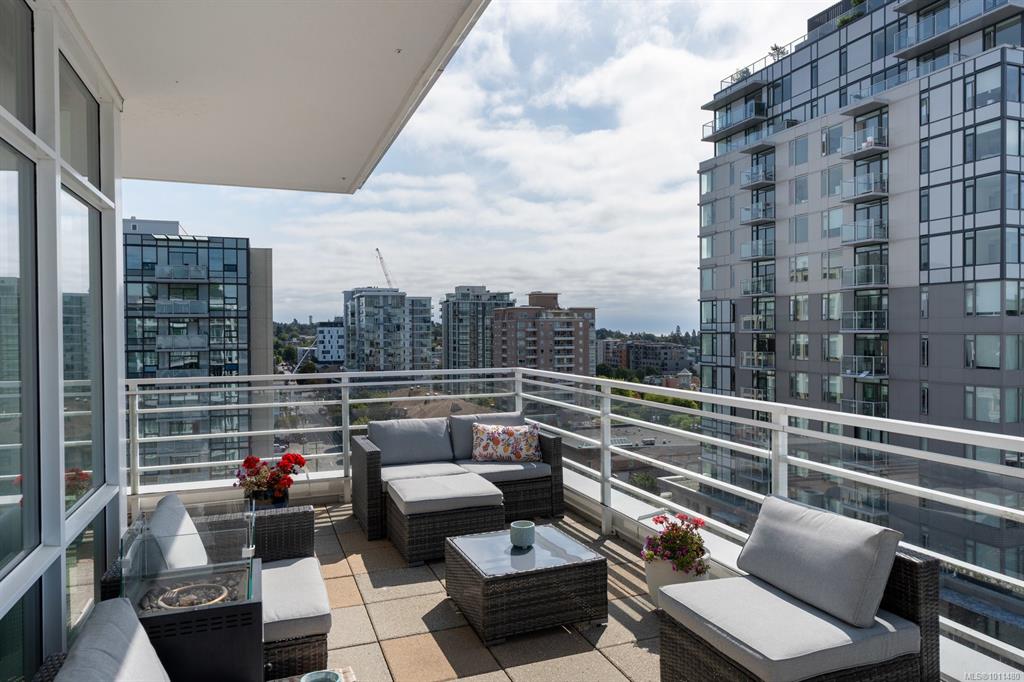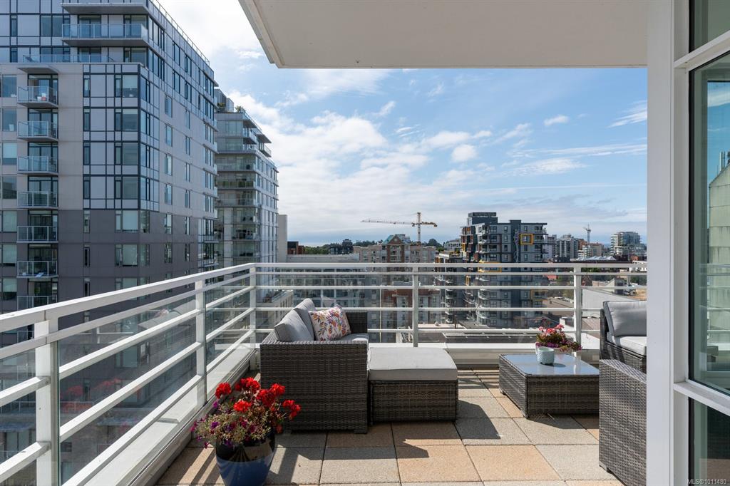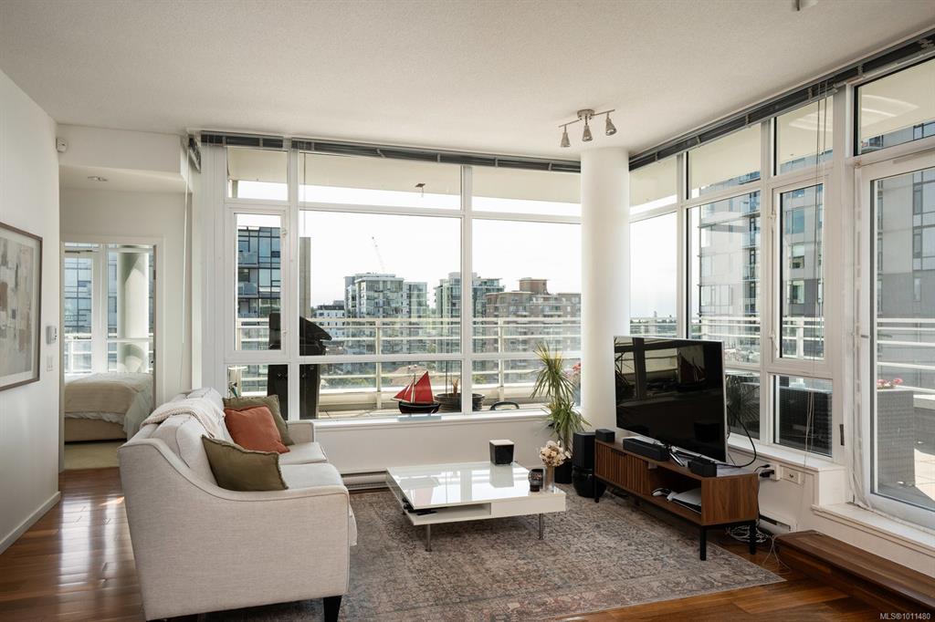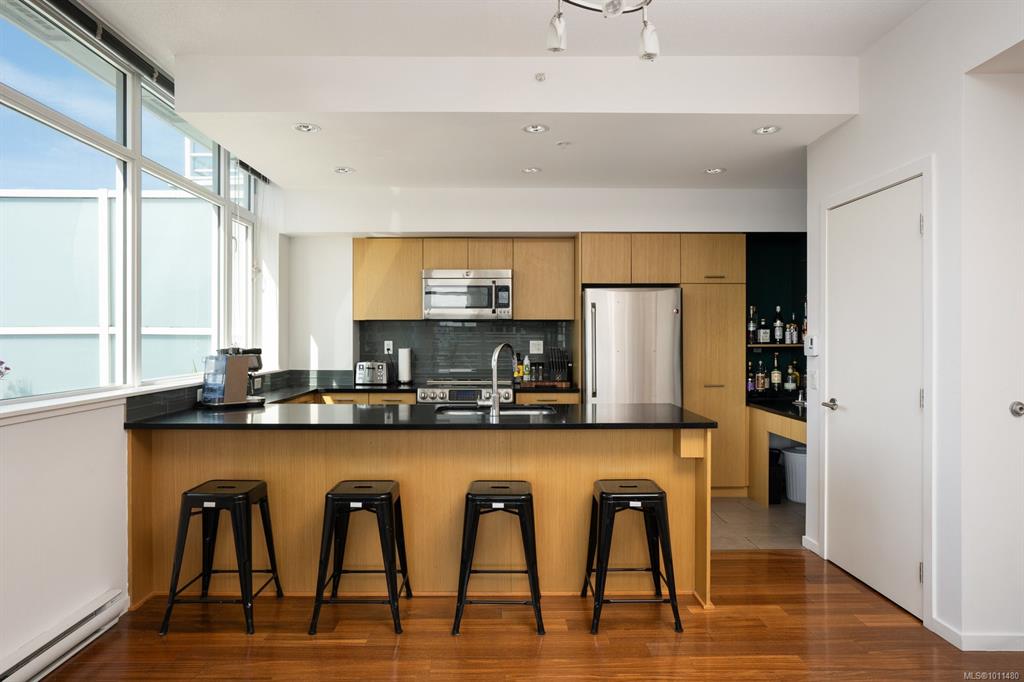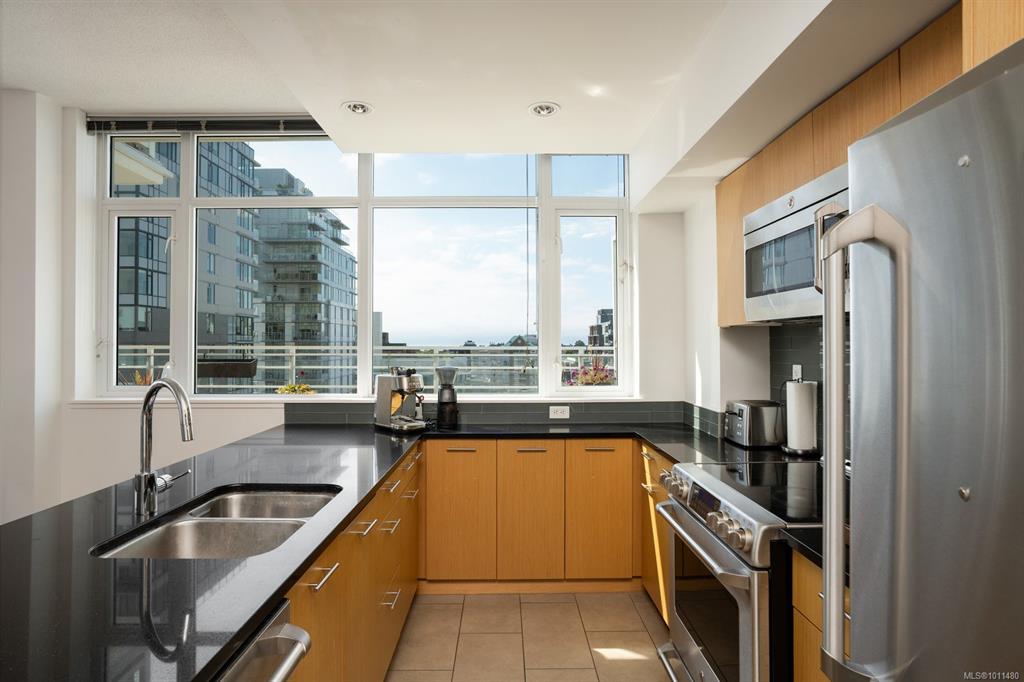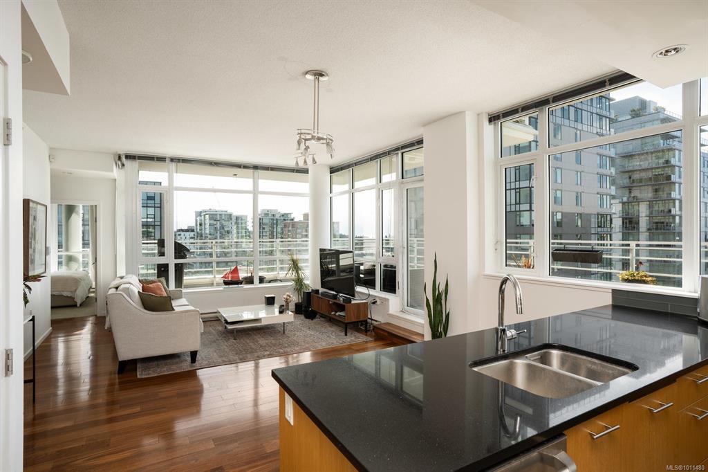 Experience elevated living in this stunning corner-unit sub penthouse in a quality steel-and-concrete building in downtown Victoria. This 14th-floor, 2-bedroom, 2-bath home offers 9-ft ceilings, floor-to-ceiling windows & sweeping views of downtown, the Strait of Juan de Fuca & the Olympic Peninsula. The chef’s kitchen features quartz countertops, stainless steel appliances, a glass tile backsplash, a generous pantry & built-in desk/drink station. The primary suite is a spa-like retreat with a walk-in show...