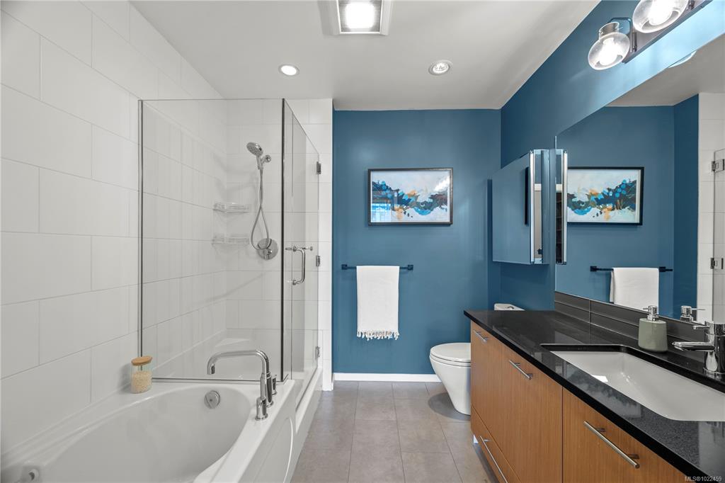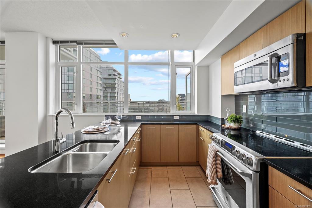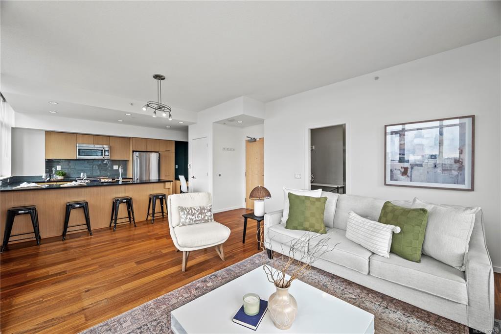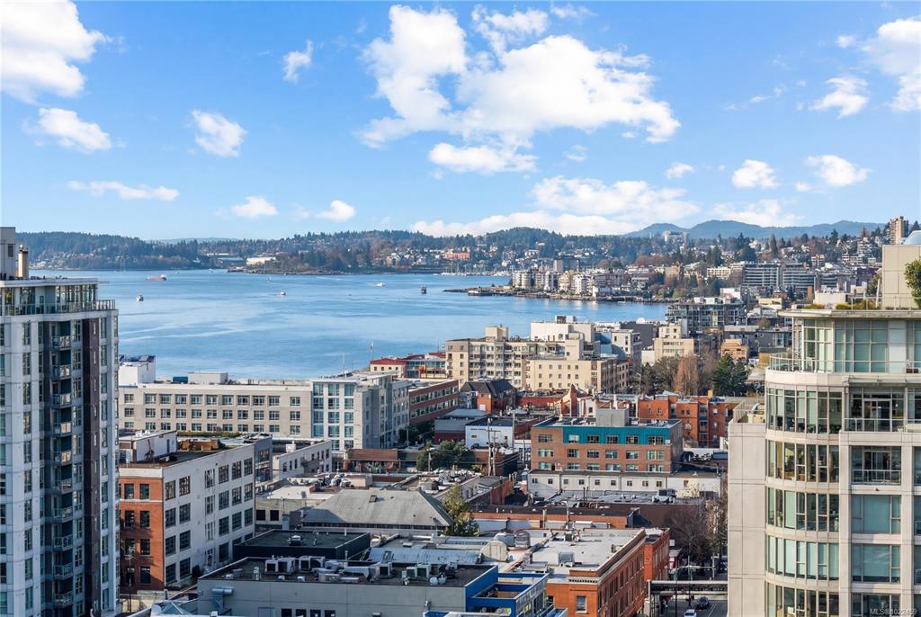 Beautiful OCEAN, Olympic Mountain, and City views from this sub Penthouse! Floor-to-ceiling windows and sunny south exposure fill the home with light. Spectacular views sunrise to sunset from your kitchen, living room or massive (460 sqft)wrap around deck with gas and water hookups. Corner suite with open layout featuring: 2 balconies (virtually staged), warm hardwood floors, 9' ceilings, bathrooms with in-floor heating, stylish kitchen with granite countertops, ss appliances, and bar nook. The spacious Pri...