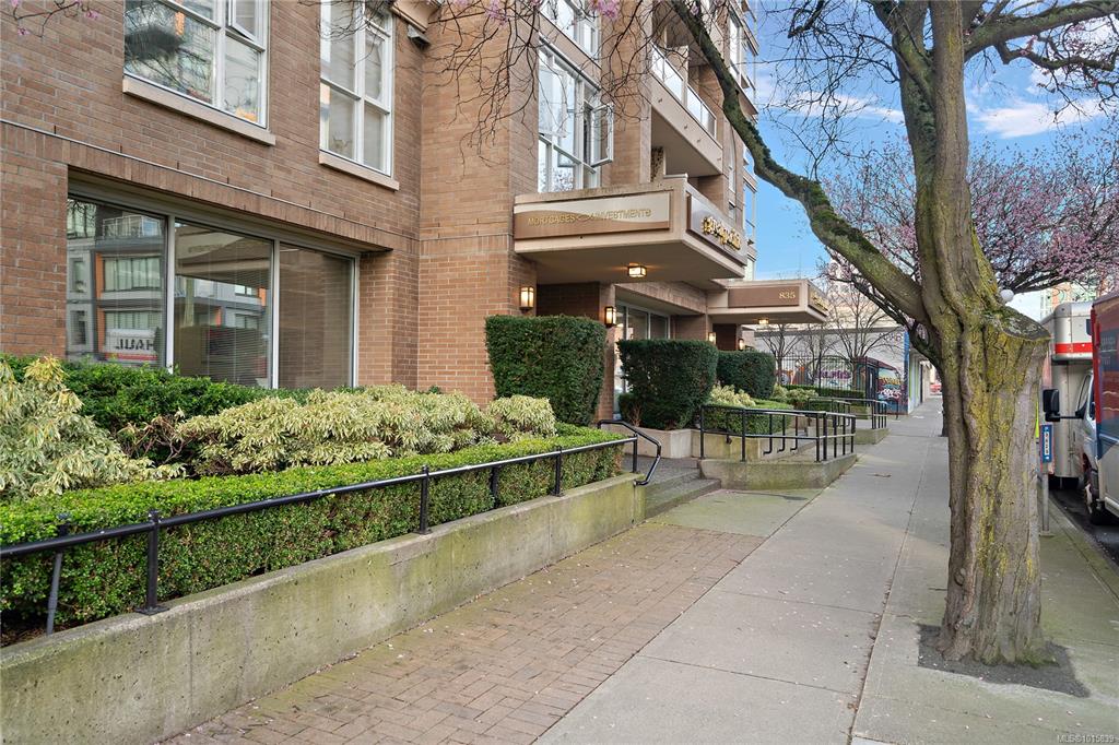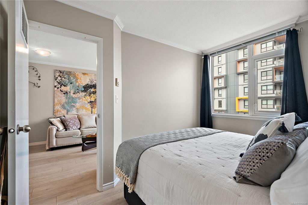 Experience the pulse of downtown Victoria in a fabulous location. This 449 square foot, one-bedroom suite at “The Metropolitan,” a well-maintained steel and concrete building in the heart of Victoria, features a well-designed floor plan that maximizes space. It includes new flooring, mirrored closet doors, a spacious bathroom with new tile, tub and vanity, A fantastic feature is the in-suite laundry with a stackable washer and dryer. The building has been recently refreshed with fully updated plumbing and b...