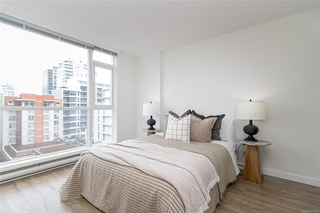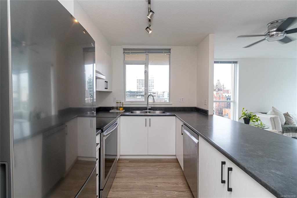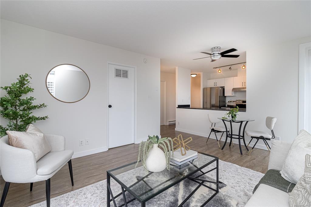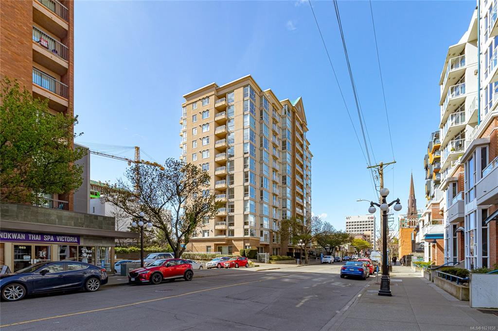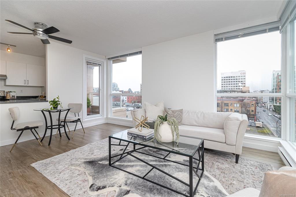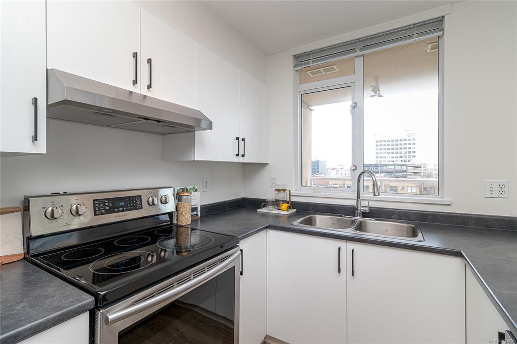 Bright, corner unit 1 bedroom condo in The Metropolitan, at the heart of Downtown Victoria! This updated home features a modern kitchen with refreshed cupboards, updates throughout, in-suite laundry, and newer appliances. Open living space flooded with natural light, storage, and a west-facing balcony perfect for relaxing evenings with beautiful city views. Spacious bedroom with renovated full bathroom! Secure building, underground parking, separate storage locker and low-maintenance living, all just steps ...