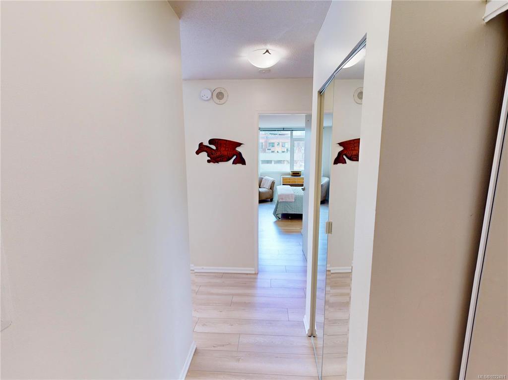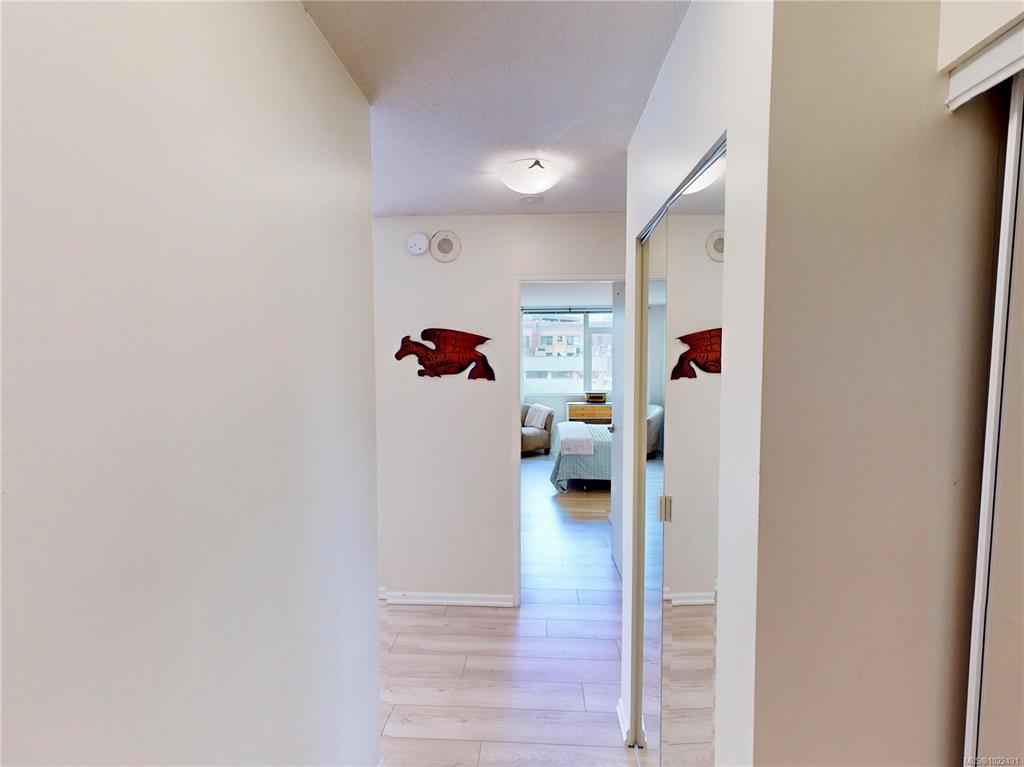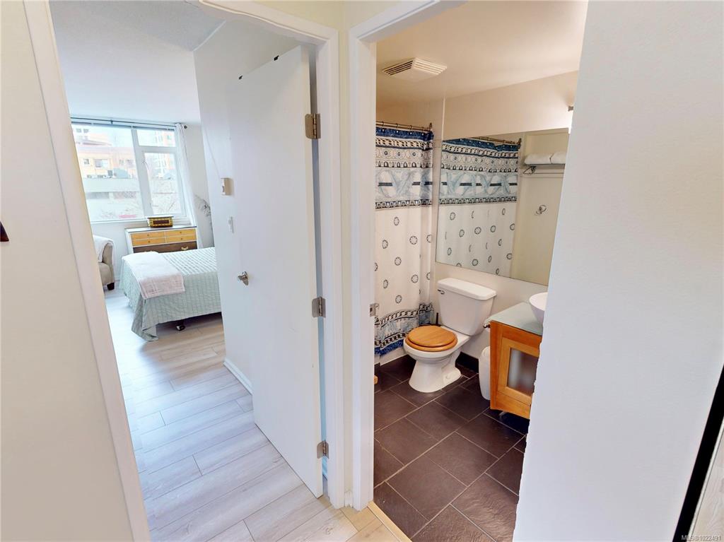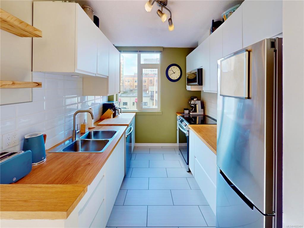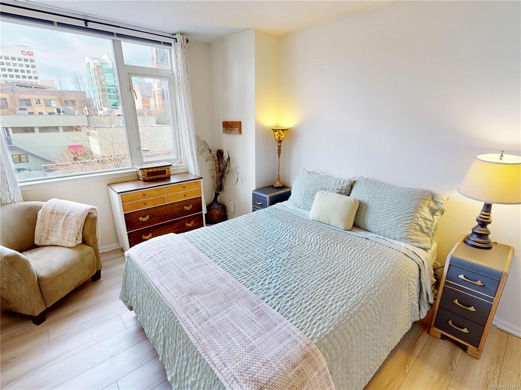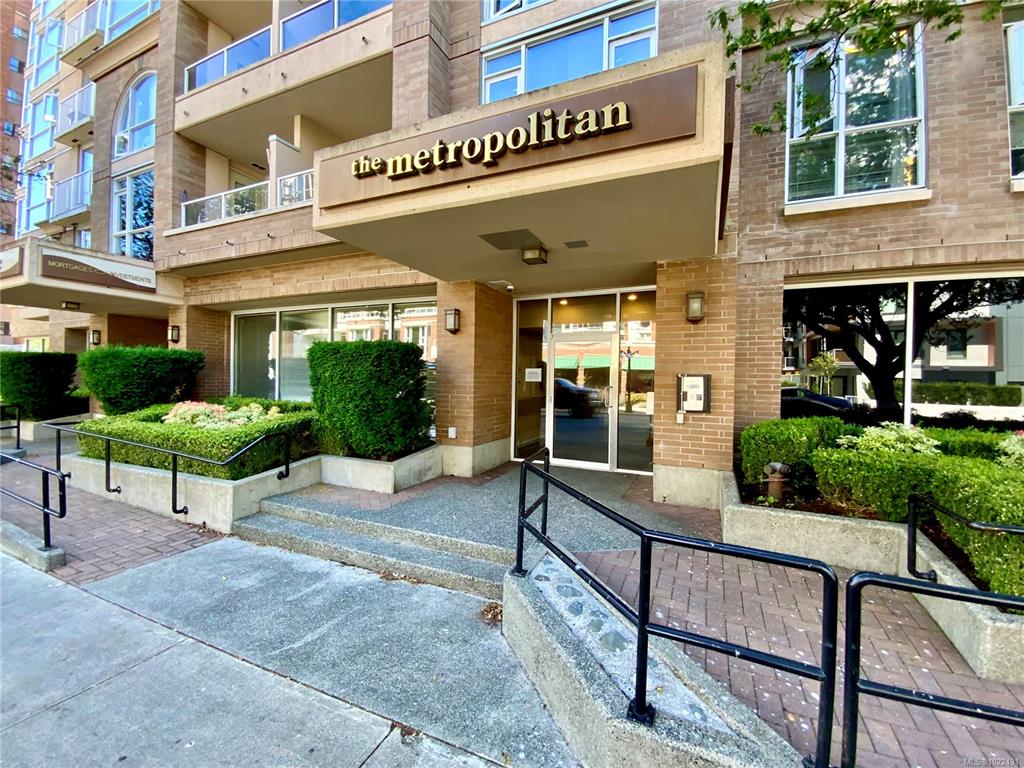 Live in the heart of Downtown Victoria at The Metropolitan! This 1 bed + den, 1 bath SW corner unit, renovated in 2024, offers 756 sq ft of bright, spacious living. The kitchen shines with new cabinets, butcher block counters and SS appliances. The generous living room boasts new floors & floor-to-ceiling windows, flooding the space with natural light. The primary bedroom is well sized, paired with a fresh, modern 4 pc bath. The versatile den works well as a second bedroom, guest room, nursery, office, or c...