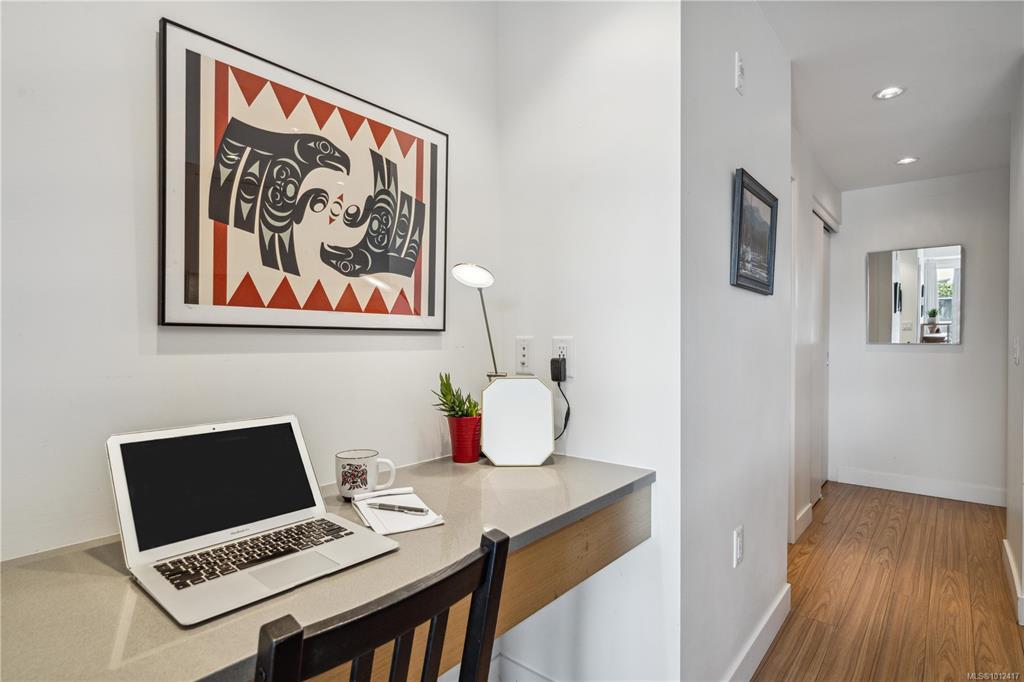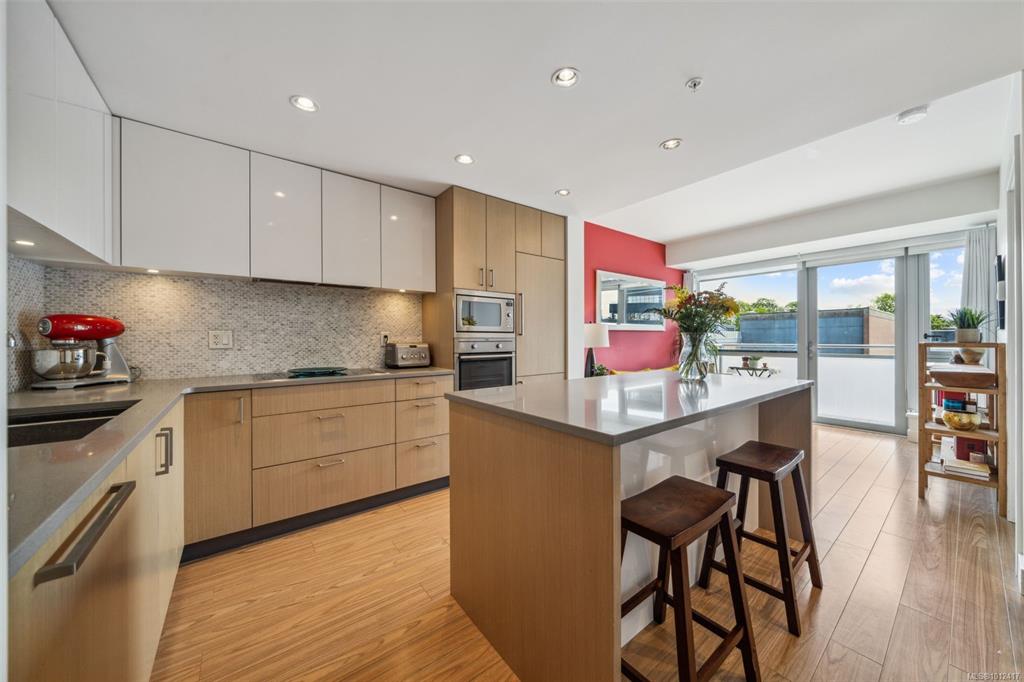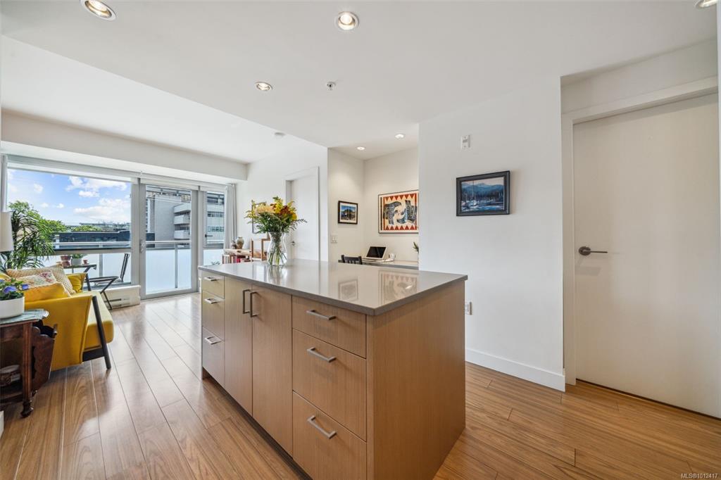 *Open House -Sat 20th 1-2* Come see this elegant south-facing condo at The Escher, located in the heart of Victoria—just steps from shops, cafés, restaurants, and the Inner Harbour. All Furniture included in purchase price, so it’s move-in ready! This beautifully designed suite features a modern open-concept kitchen with a large island and bar seating, an office nook, heated bathroom floors, and in-suite laundry. Sunlight pours in through the south-facing windows, offering views of downtown, Pioneer Square,...