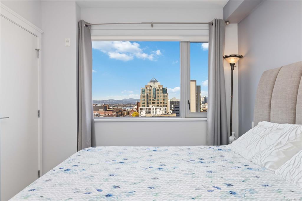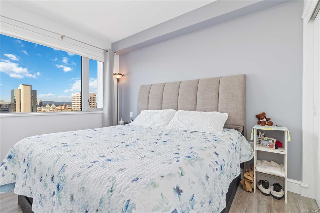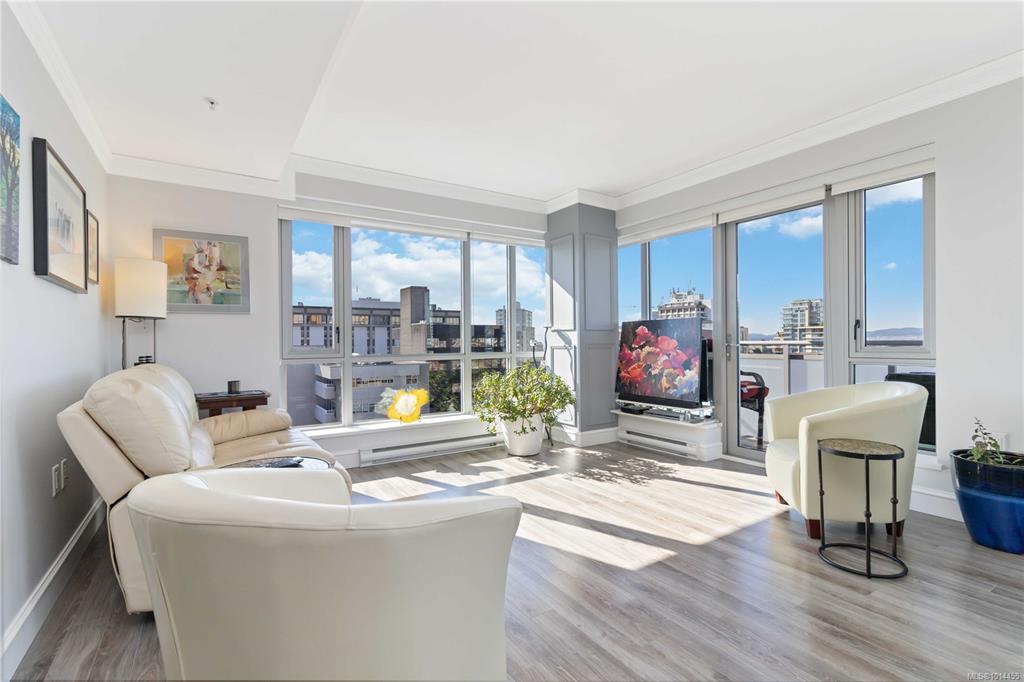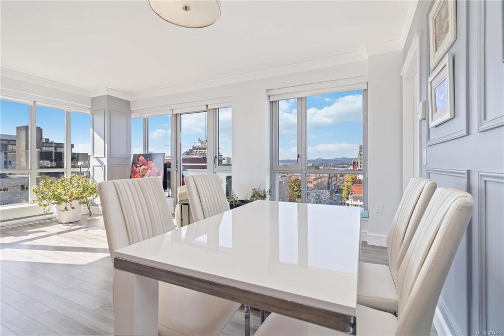 Welcome to The Escher, a steel and concrete building by renowned Chard developments. Enjoy the sunsets from the 8th floor of this corner unit which boasts panoramic, south west facing views of downtown Victoria. This turn-key unit shows like new, with tasteful updates including crown mouldings, a wainscoting feature wall, upgraded kitchen pantry, laminate plank flooring and fresh paint throughout. Flooded in natural light, the open concept design offers great separation between bedrooms including stainless ...