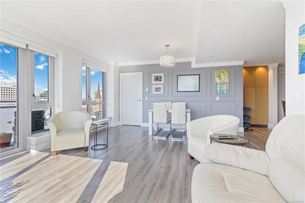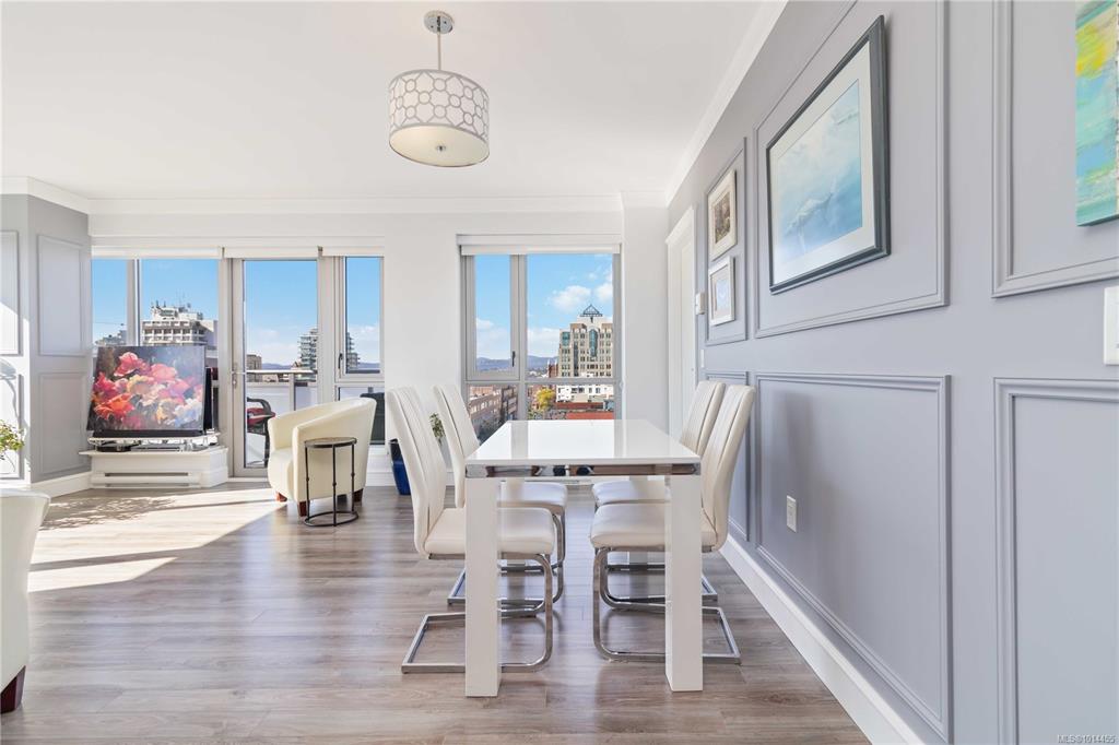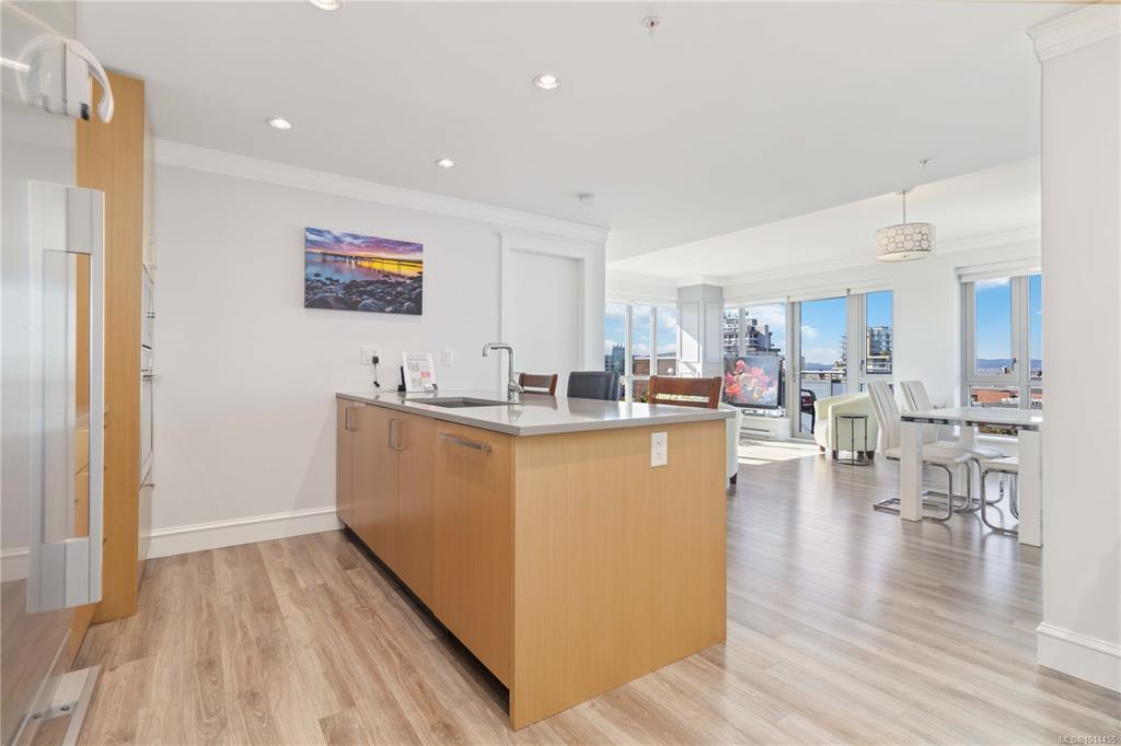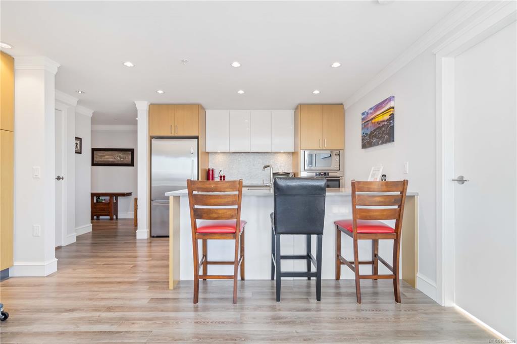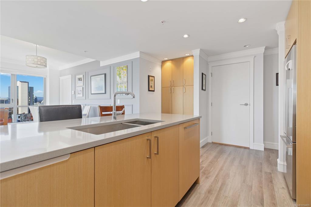 Welcome to The Escher, a steel and concrete building by renowned Chard developments. Enjoy the sunsets from the 8th floor of this corner unit which boasts panoramic, south west facing views of downtown Victoria. This turn-key unit shows like new, with tasteful updates including crown mouldings, a wainscoting feature wall, upgraded kitchen pantry, laminate plank flooring and fresh paint throughout. Flooded in natural light, the open concept design offers great separation between bedrooms including stainless ...