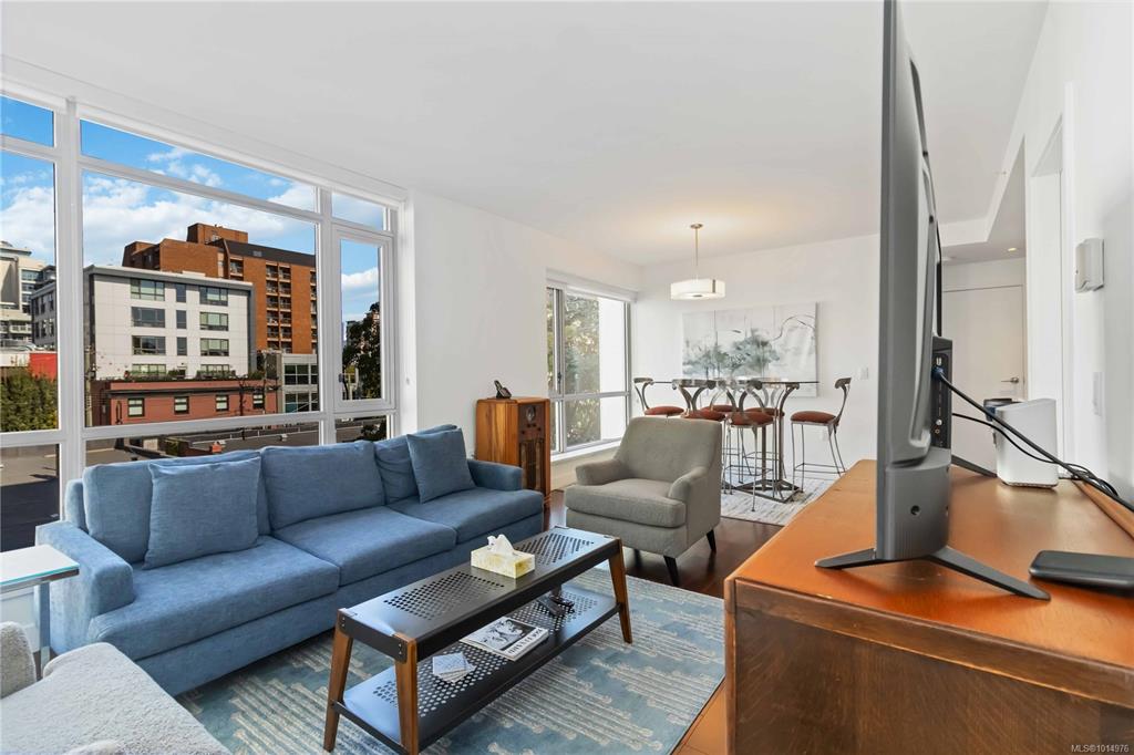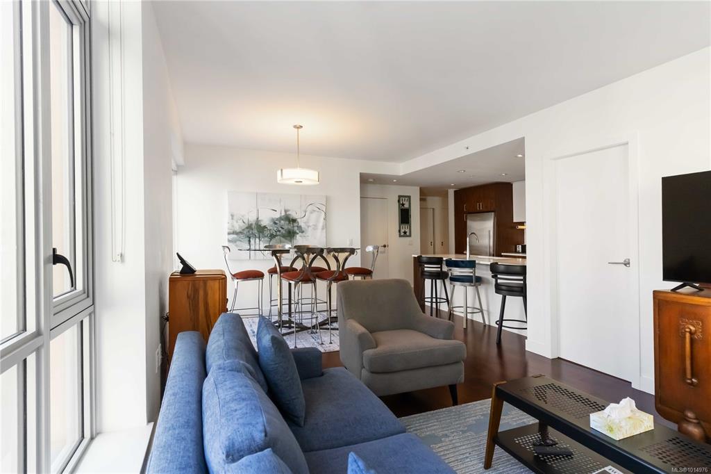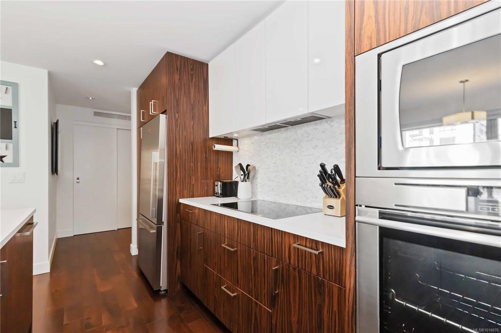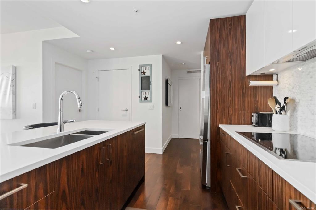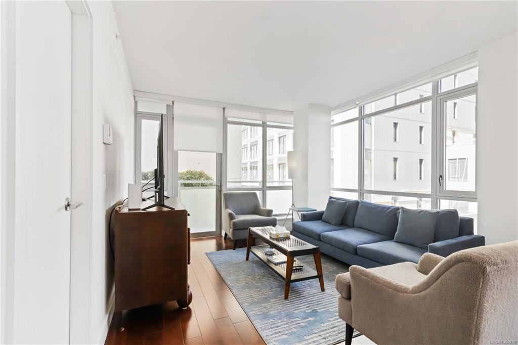Move-in ready corner unit in a quality Chard Development building on the edge of downtown—close to everything yet tucked away from the bustle. This bright 2-bed, 1-bath home features a smart split-bedroom layout, warm wood floors, and floor-to-ceiling windows. The gourmet kitchen offers quartz counters and a large island, perfect for cooking and entertaining. The sleek bath has dual access, including from the primary suite. A welcoming foyer, in-suite laundry, and secure underground parking add ease. Buildi...