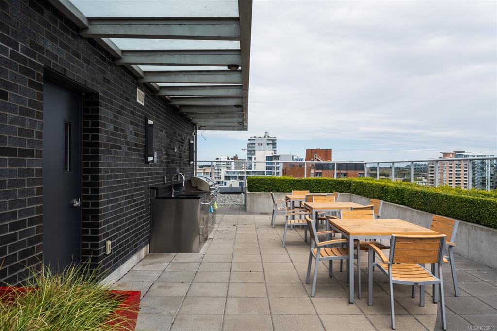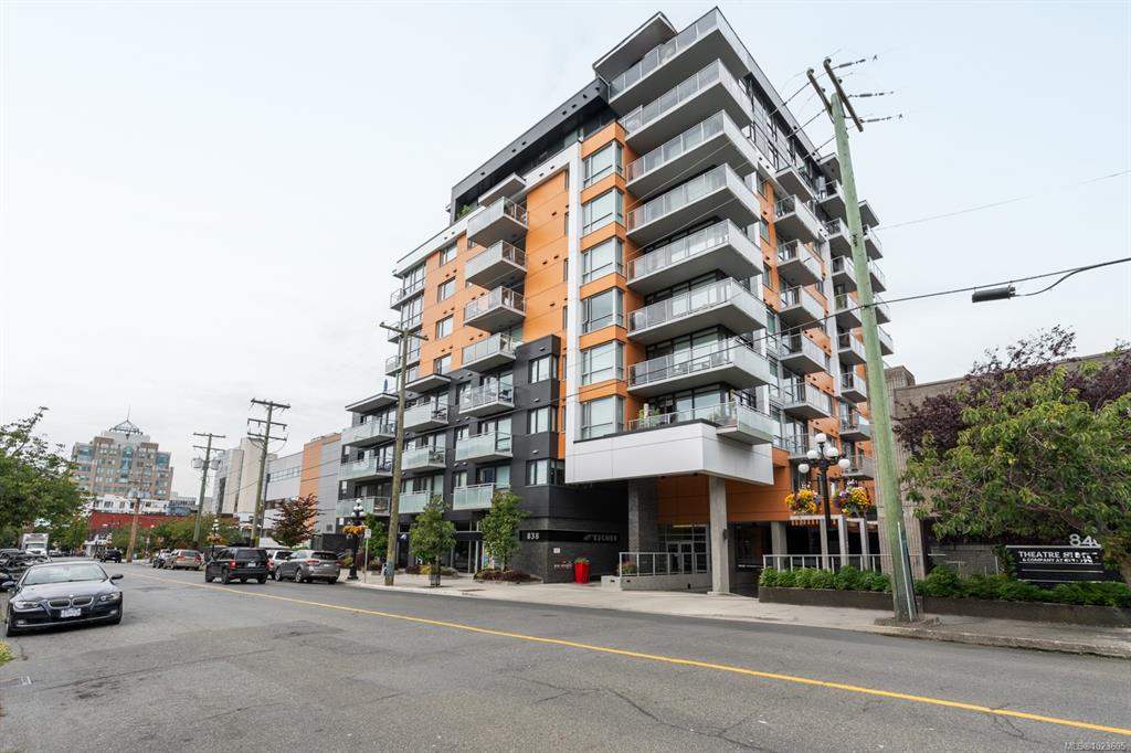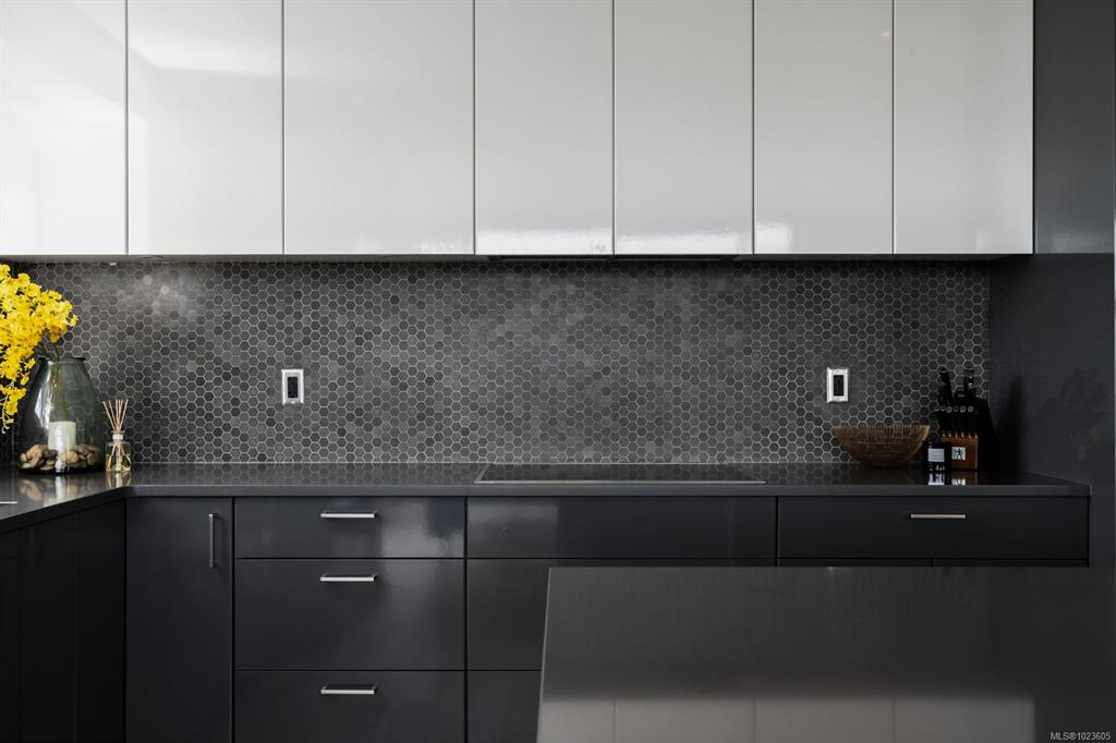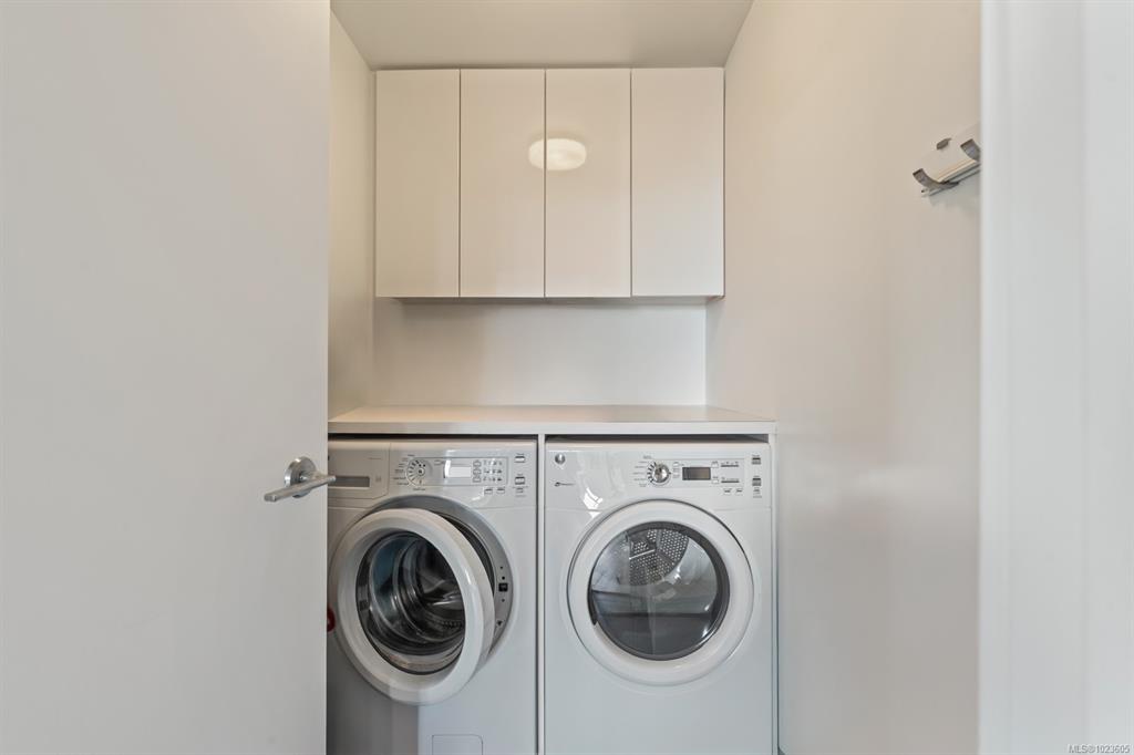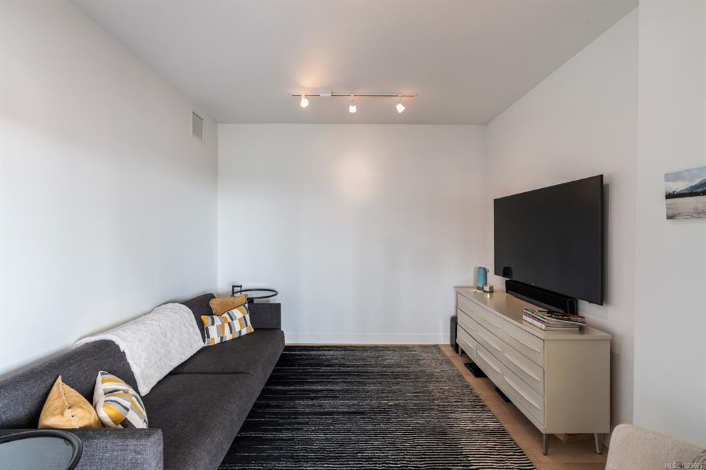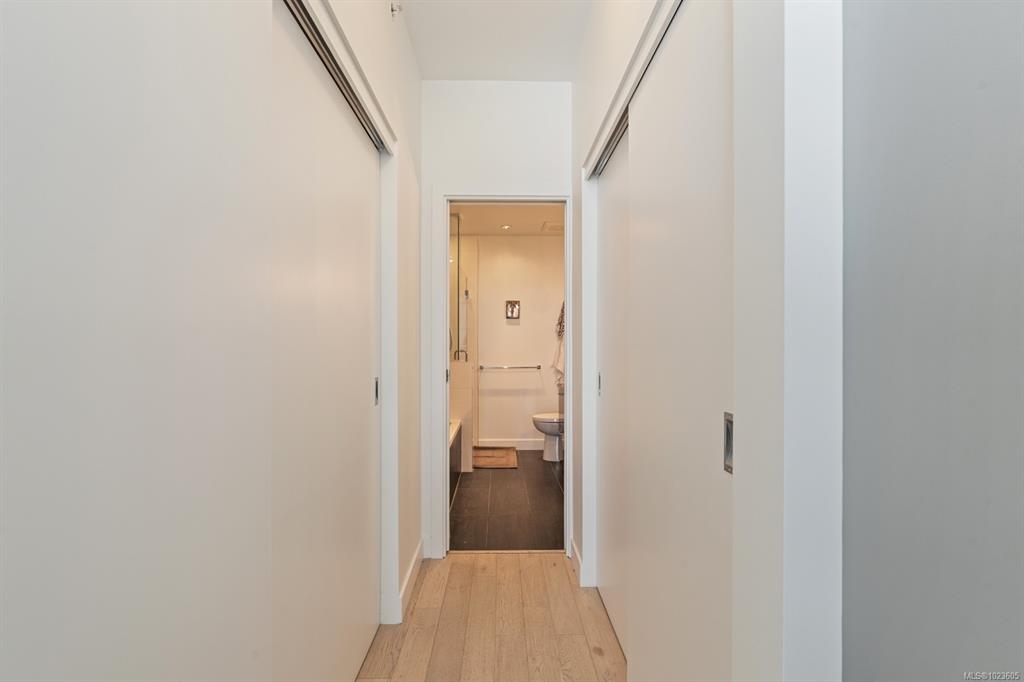 This stunning sub-penthouse at The Escher offers 2 spacious bedrooms, 2 full baths, a large den, and over 1,300 sq ft of refined living space. Enjoy breathtaking panoramic views of the Pacific Ocean, Olympic Mountains, and downtown Victoria through expansive floor-to-ceiling windows. The open layout features 9' ceilings, a gourmet kitchen with quartz counters, induction cooktop, wine fridge, and enough space for hosting. The primary suite includes a spa-inspired ensuite with soaker tub, walk-in shower, heat...