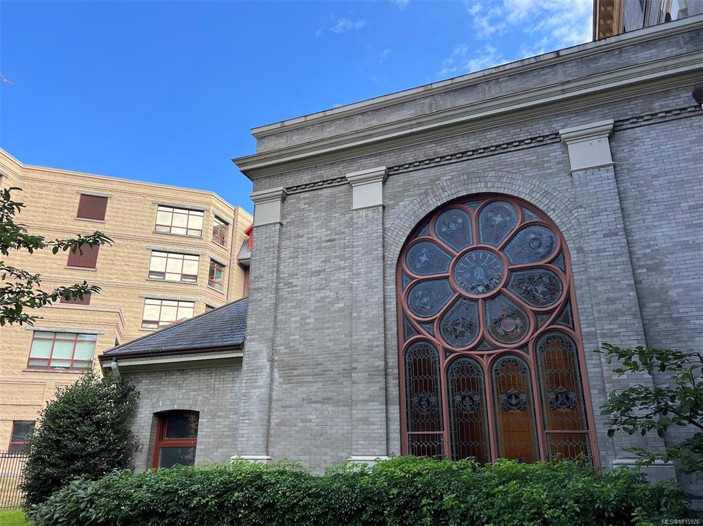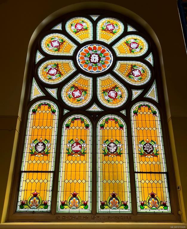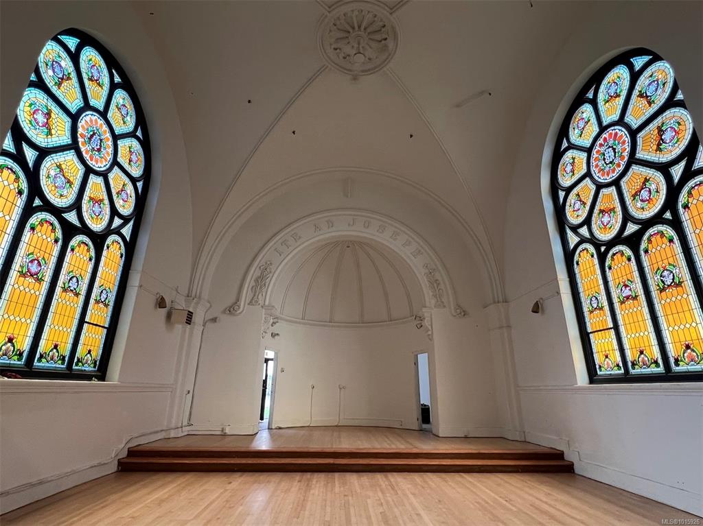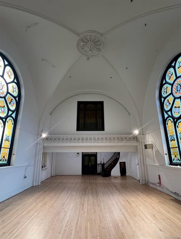 One-of-a-kind opportunity to lease the historic chapel + mezzanine at St Joseph's Hospital. ~26' high cathedral ceiling and oversized original stained glass windows on two sides. Tremendous and unique location on the edge of downtown. This architectural gem includes a wraparound vestibule entrance with private entrance, a 324 SF second level mezzanine with stained glass windows, and a private 2- or 3- piece washroom. The unit is ready for your finishing touches, with original hardwood floors newly restored....