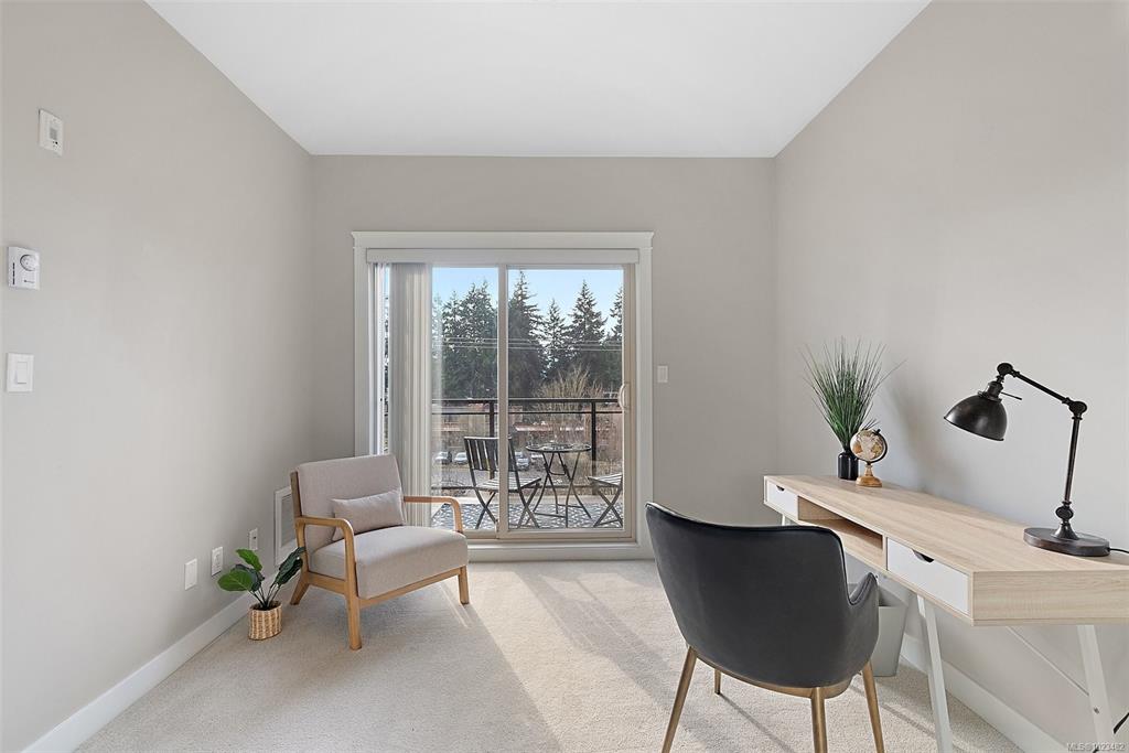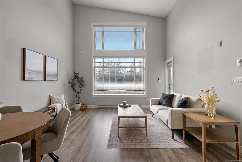 OPEN HOUSE | SUN JAN 25 | 1–3 PM Top-floor and one of the largest units in the building, this 2-bedroom, 2-bathroom condo at 844 Goldstream Avenue is located in the heart of Langford and showcases impressive 17-foot vaulted ceilings with a bright, open-concept living, dining, and kitchen layout. Large windows flood the home with natural light, creating an airy and welcoming atmosphere. The spacious kitchen offers quartz countertops, newer appliances, and an eat-in island—ideal for everyday living and enter...
