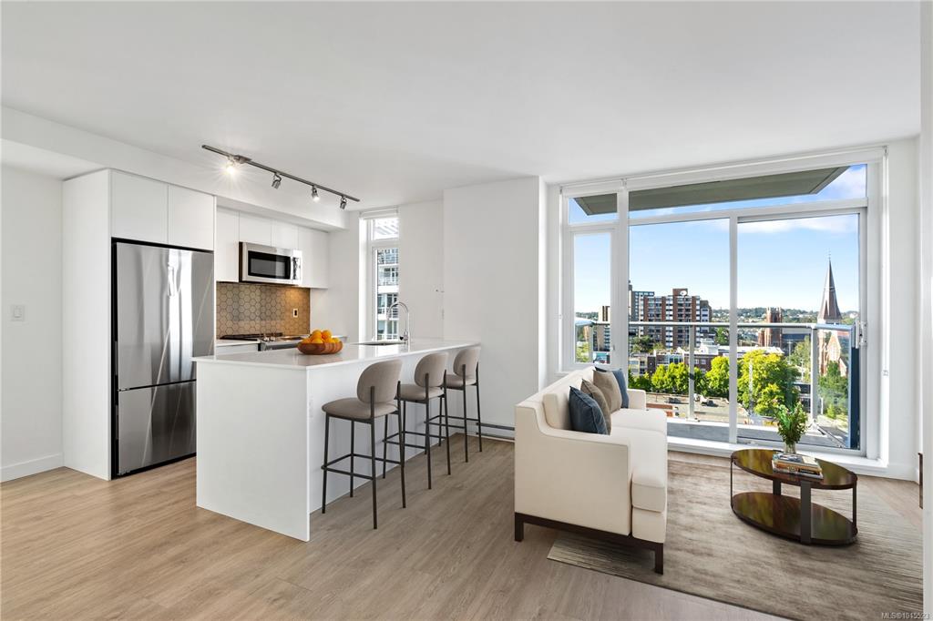 Own this stylish 2 bed, 2 bath, 12th floor, corner condo in Vivid at Yates, a steel-and-concrete building in the heart of downtown. Functional layout, plus a modern kitchen with stainless steel appliances, sleek quartz countertops and ample storage. Beautiful city, mountain and ocean views, with stunning sunsets. This nearly new home includes the balance of the 2-5-10 New Home Warranty - GST already paid! In-suite laundry, a storage locker, and secure bike storage. Restaurants, groceries, gyms, theatres, an...