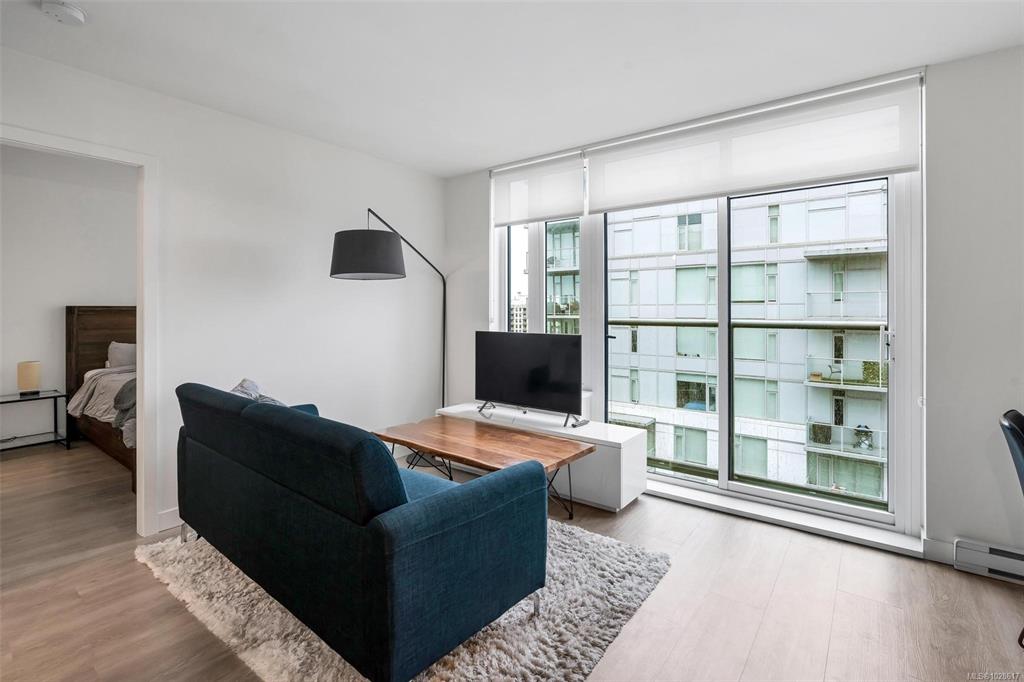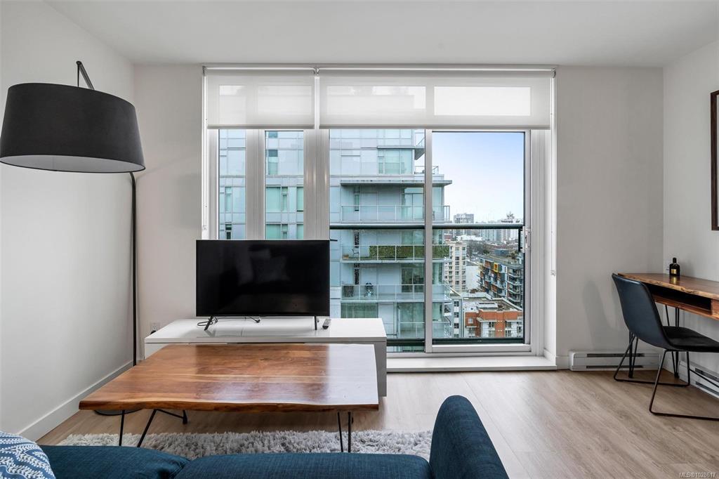 Incredible value on the 18th floor! Enjoy beautiful ocean and city views from this bright south-facing condo in the heart of downtown Victoria. Located in a quality 2021 Chard-built concrete building, offering modern design and an unbeatable urban lifestyle. This well-designed 1 bed, 1 bath home features an efficient open layout, large windows for excellent natural light, and contemporary finishes throughout. The kitchen offers quartz countertops, stainless steel appliances, and sleek cabinetry, opening ...