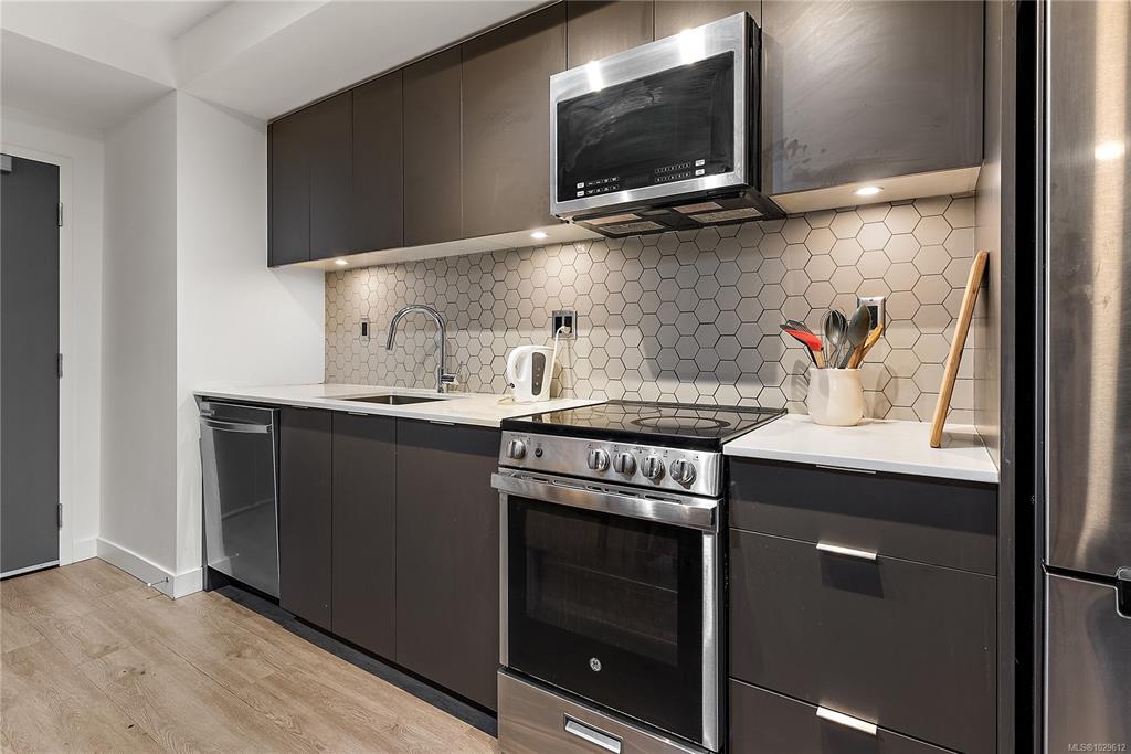 This modern condo, built in 2021, offers a spacious 1-bedroom layout plus a versatile 9'x9' alcove, perfect for a home office or guest space. The kitchen features stainless steel appliances, and the unit boasts a nice sized patio, ideal for growing plants or enjoying a coffee with a friend. Residents also have access to an expansive rooftop patio, complete with BBQs, a dog run, and a community garden—a perfect spot for entertaining while taking in stunning views of the city skyline and the Pacific Ocean. Ad...