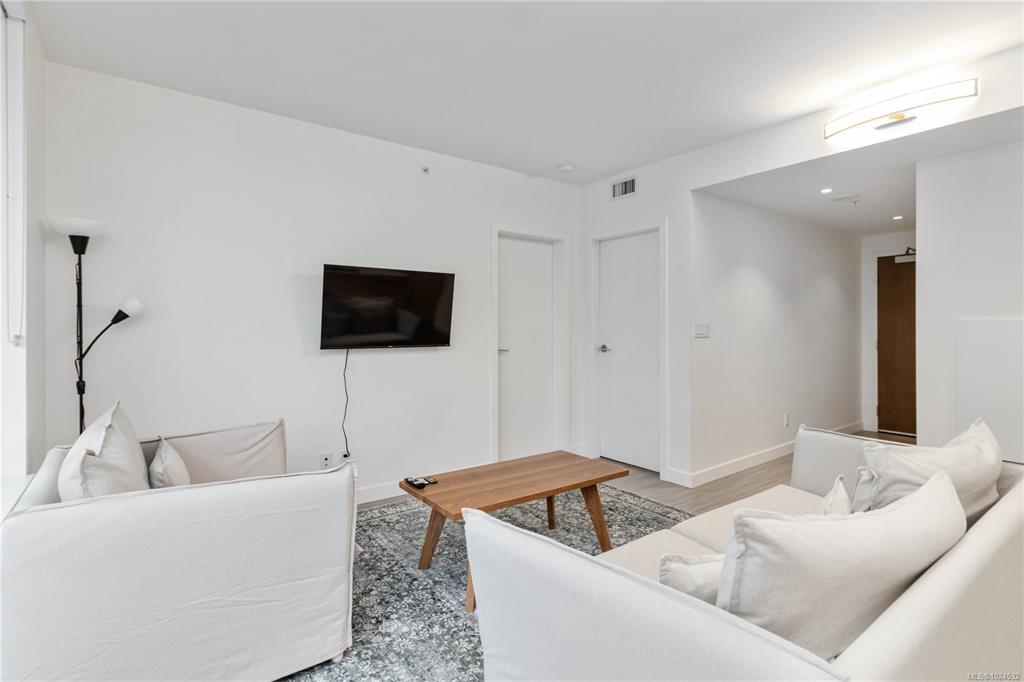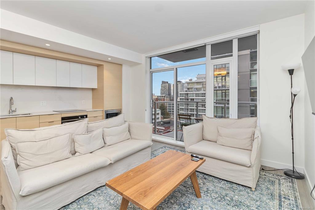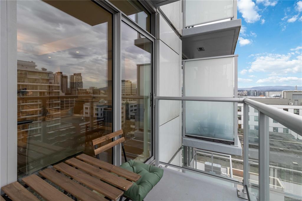 Welcome to Yates on Yates, a quality-built concrete and steel building in the heart of downtown Victoria, close to all your favourite shops, restaurants, and everyday amenities! Vacant and move-in ready, this quiet 12th-floor one-bedroom home features floor-to-ceiling windows that bring in plenty of natural light and offer amazing city views. The kitchen includes integrated Fisher & Paykel appliances, custom cabinetry, and quartz countertops. The open living area leads to a covered, well-sized balcony, idea...