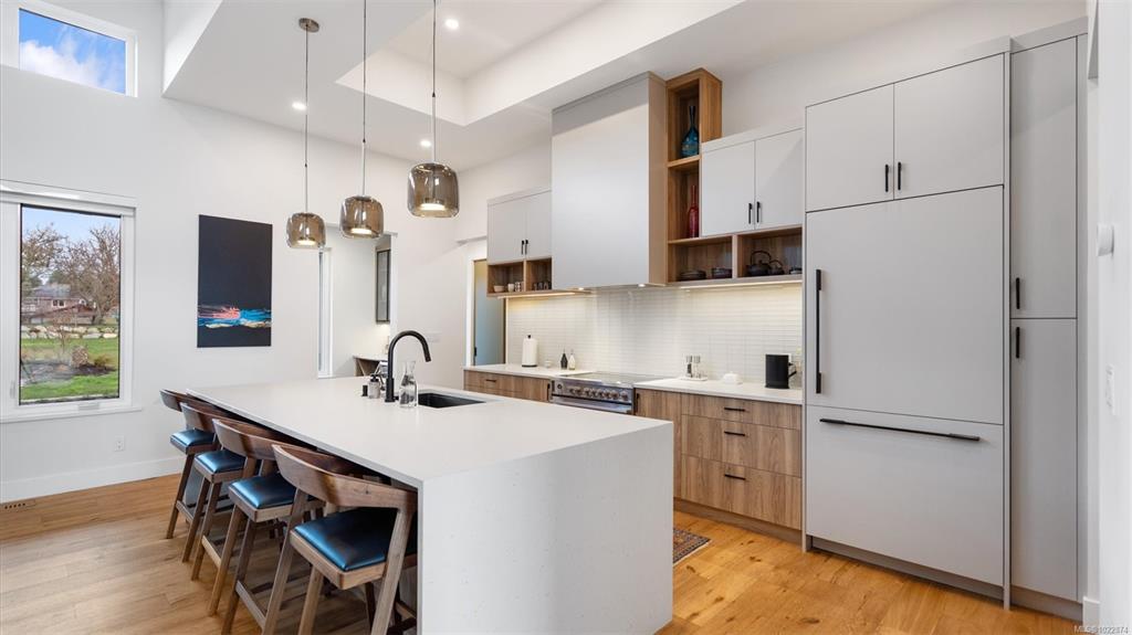 Exceptional custom-built rancher in a quiet North Saanich neighbourhood, surrounded by beaches, parks, and scenic outdoor spaces. Completed in 2022 and designed by the builder/developer for their own residence, this home showcases thoughtful design, quality craftsmanship, and timeless mid-century modern styling. Set on a private, south-facing half-acre lot, the home offers nearly 2,800 sq ft of bright, one-level living. The open floor plan is filled with natural light and designed for both comfortable every...