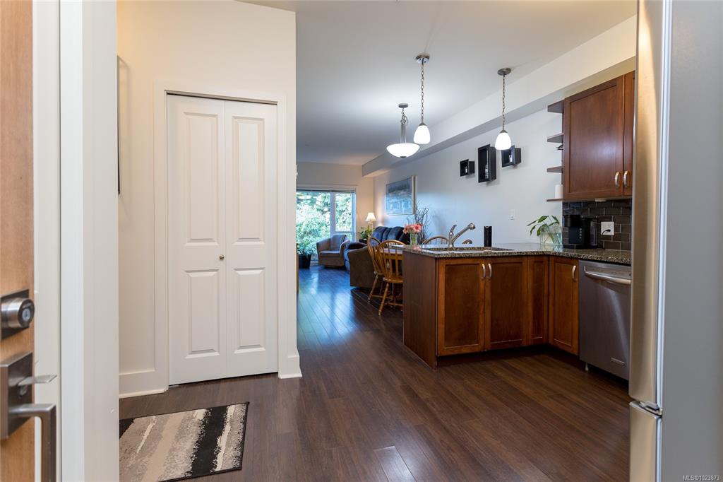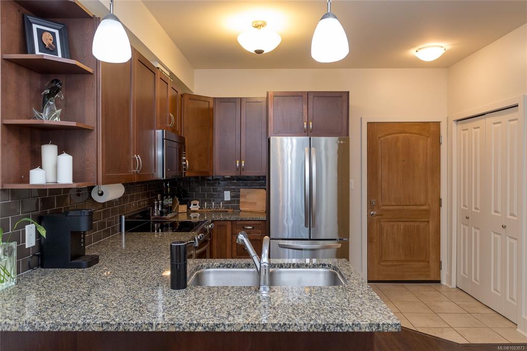Welcome to Casa Bella! Nestled in a quiet, park-like setting yet minutes to downtown Langford and the new John Horgan University campus. Enjoy a central location within walking distance to dining, shopping, transit routes, and Goldstream Village. This freshly painted 2-bedroom, 2-bath residence shows like new and offers a generous, well-designed floor plan. Highlights include quality cabinetry, granite countertops, stainless appliances, an electric fireplace, walk-in closet, in-suite laundry, and a balcony ...