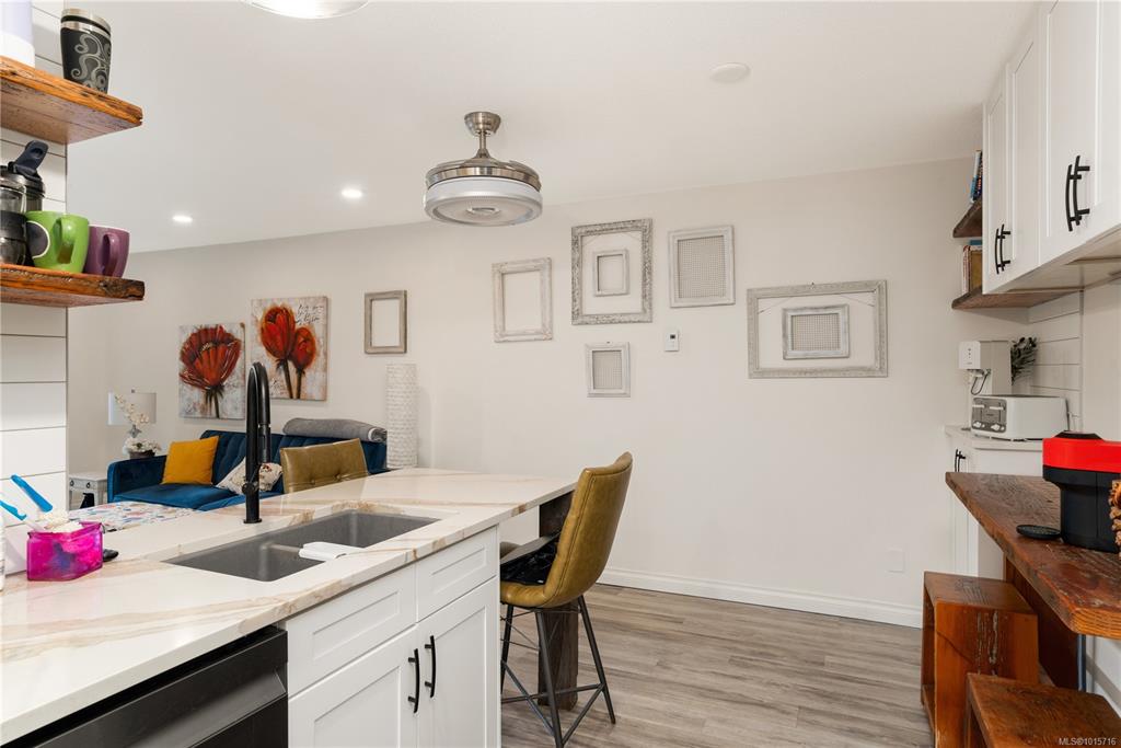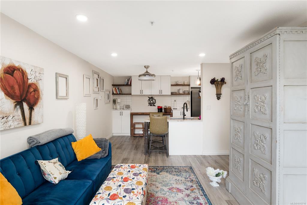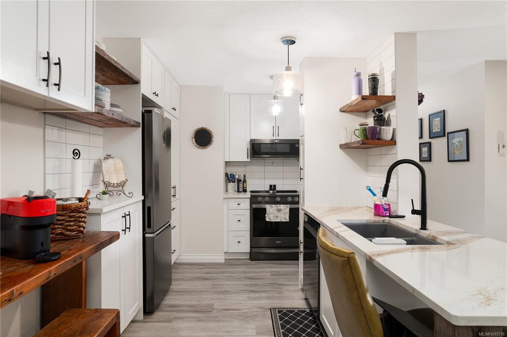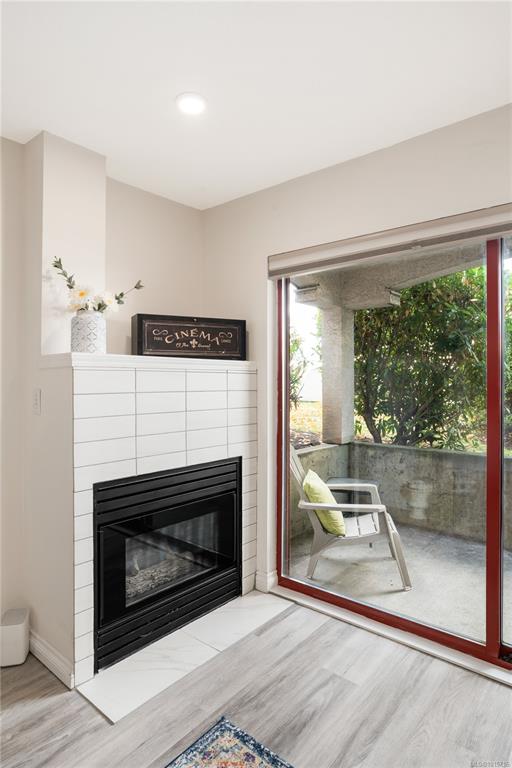 Step into this charming ground-floor condo in the heart of Esquimalt, where thoughtful updates meet effortless living. Sleek shaker-style cabinetry, modern appliances & an open layout define the reimagined kitchen, creating a space that invites connection while you cook or entertain. New laminate flooring flows throughout the home, creating a cohesive & modern feel. A cozy gas fireplace warms the living area & sliding doors lead to a private 12x6 patio. The primary bedroom serves as a serene retreat with a ...