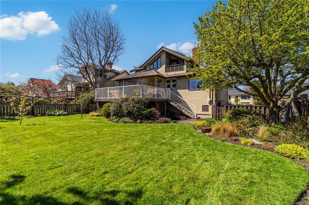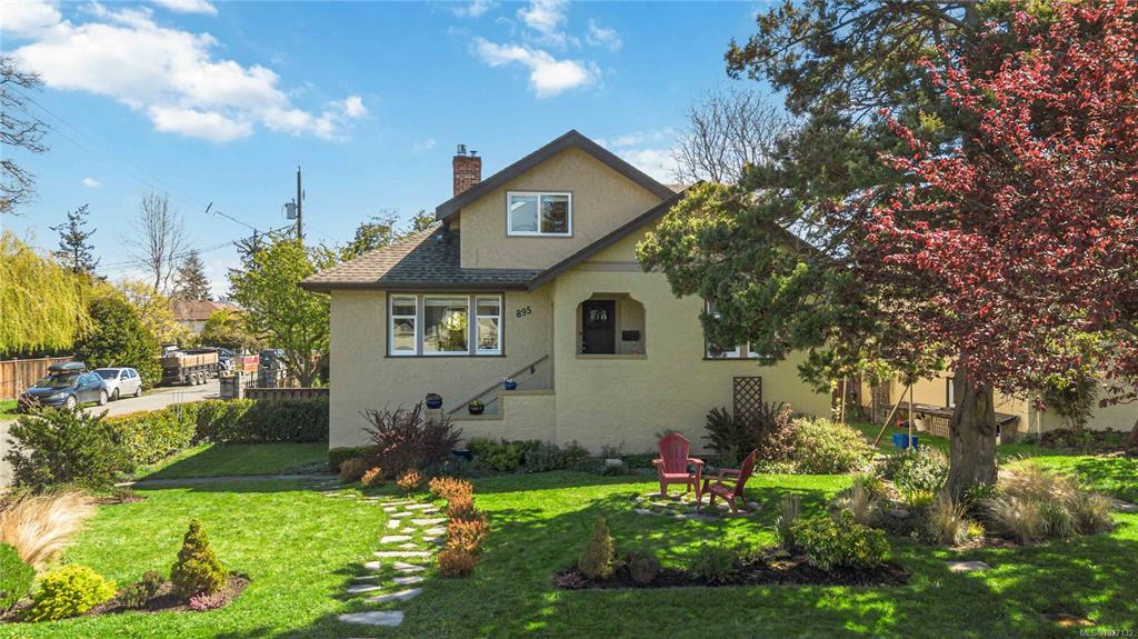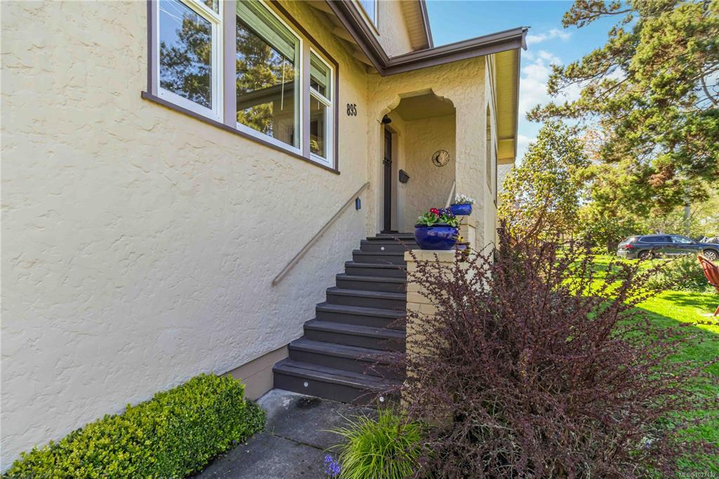 Set on a 6,840 sq ft corner lot in sought-after South Oak Bay, 895 Falkland Road is a well-kept family home offering 4-5 bedrooms, 3 bathrooms, and excellent flexibility across 3 levels. The main floor features 2 bedrooms, 1 bathroom, kitchen, laundry room, and generous living and dining areas with lots of light and easy access to the sunny backyard and large deck. The deck is a lovely place to relax or entertain, with hot tub and private outlook to the yard and starry sky. The backyard is ideal for gardeni...