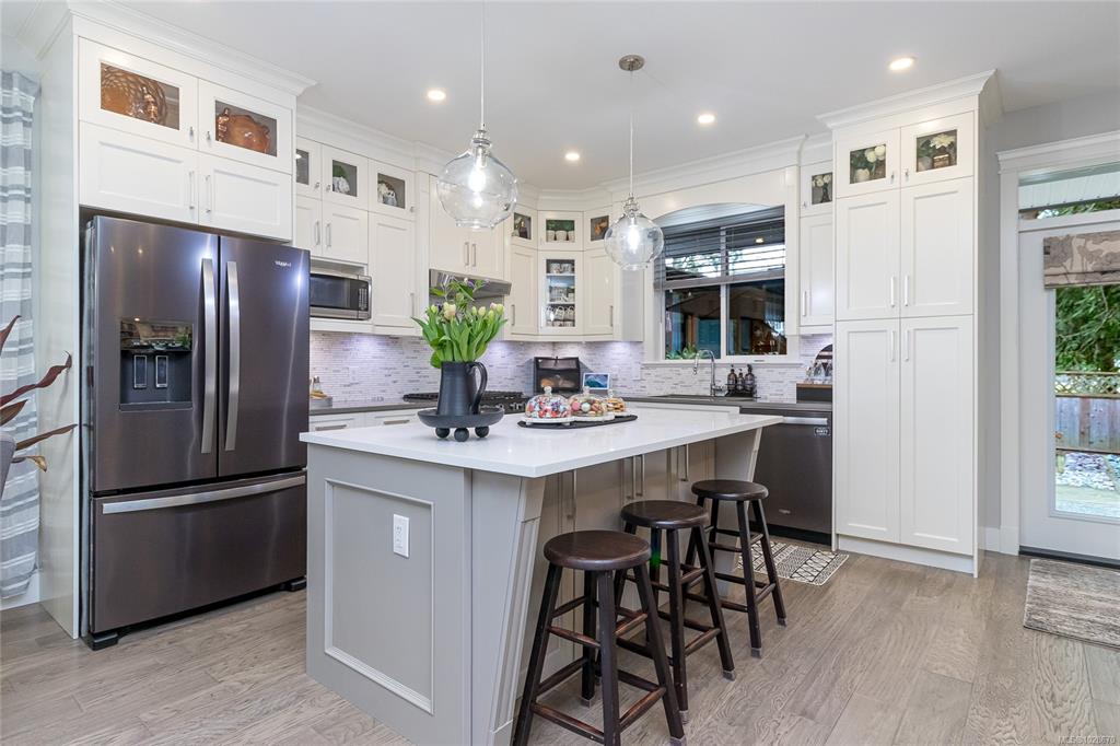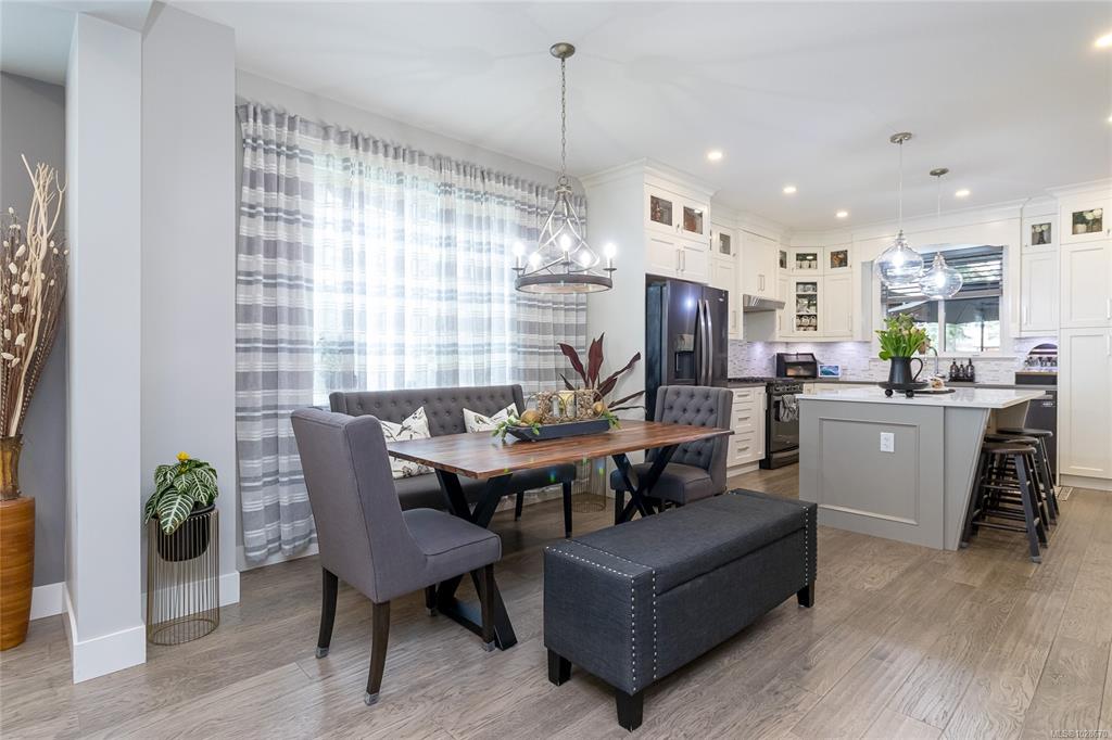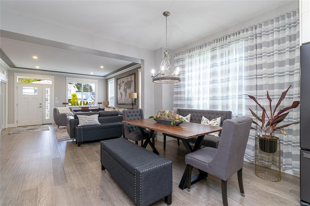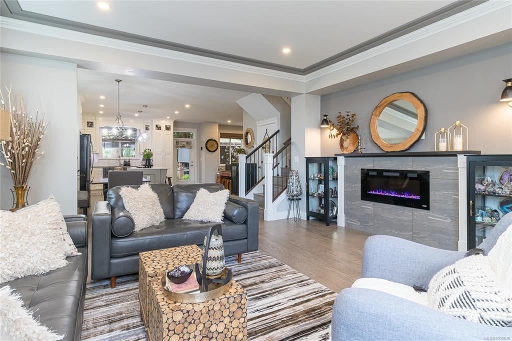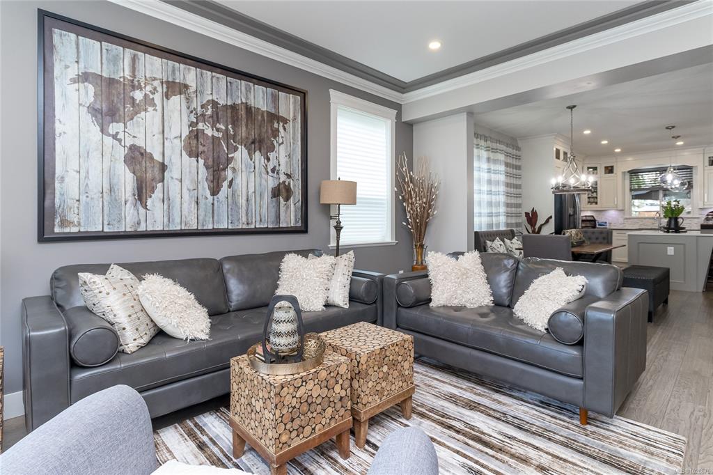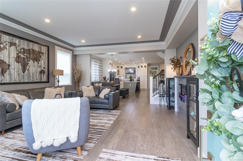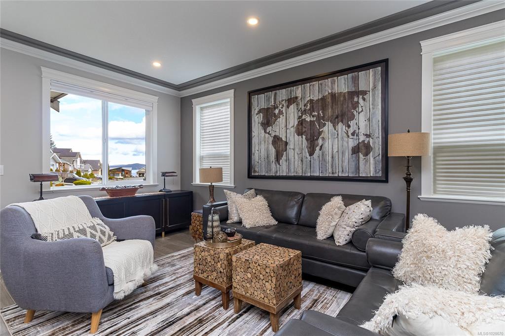 Situated on a quiet street in one of Chemainus's best areas you will find this astonishing 3 bed 3 bath Ocean and Coast mountain view home. Built in 2019 by PGO Developments, known locally for their quality of build and attention to detail. Chefs kitchen with Island, stainless appliances, quartz countertops and stylish cabinetry. Scraped hickory flooring throughout the open concept Dining/Living room and separate family room with detailed fireplaces, 9' tray ceilings and lots of natural light. Upstairs fin...