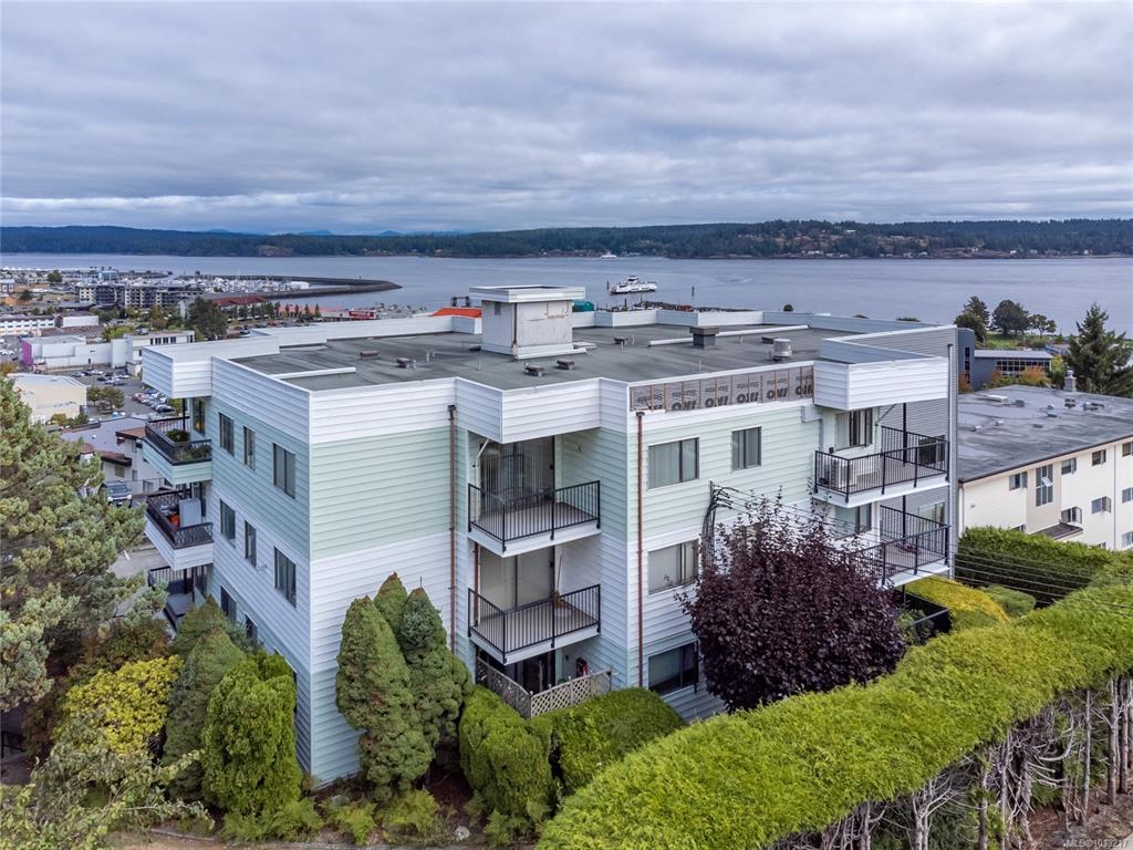 Ocean view condo steps from downtown! This 2 bedroom, 1 bath unit has some of the most breathtaking views in all of Campbell River. Admire panoramic views of Discovery Passage, Costal Mountain Range, and the city from almost every room. Watch sunsets and cruise ships go by from your private balcony! Open living space that is functional with recently update flooring features tons of natural light. Plenty of storage inside, plus additional storage room included. Perfect location walking distance downtown shop...