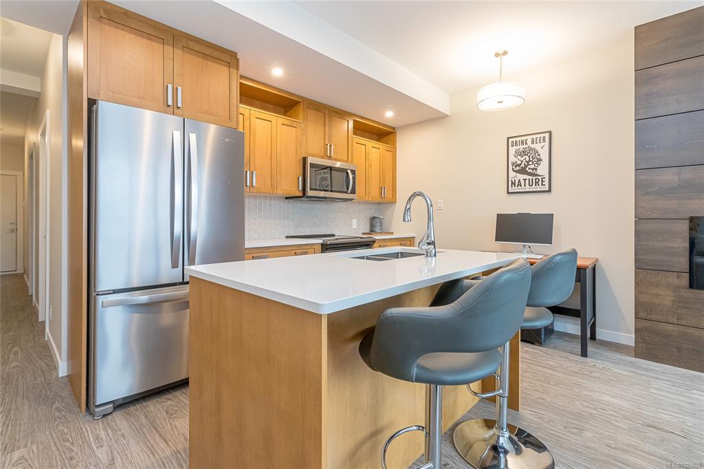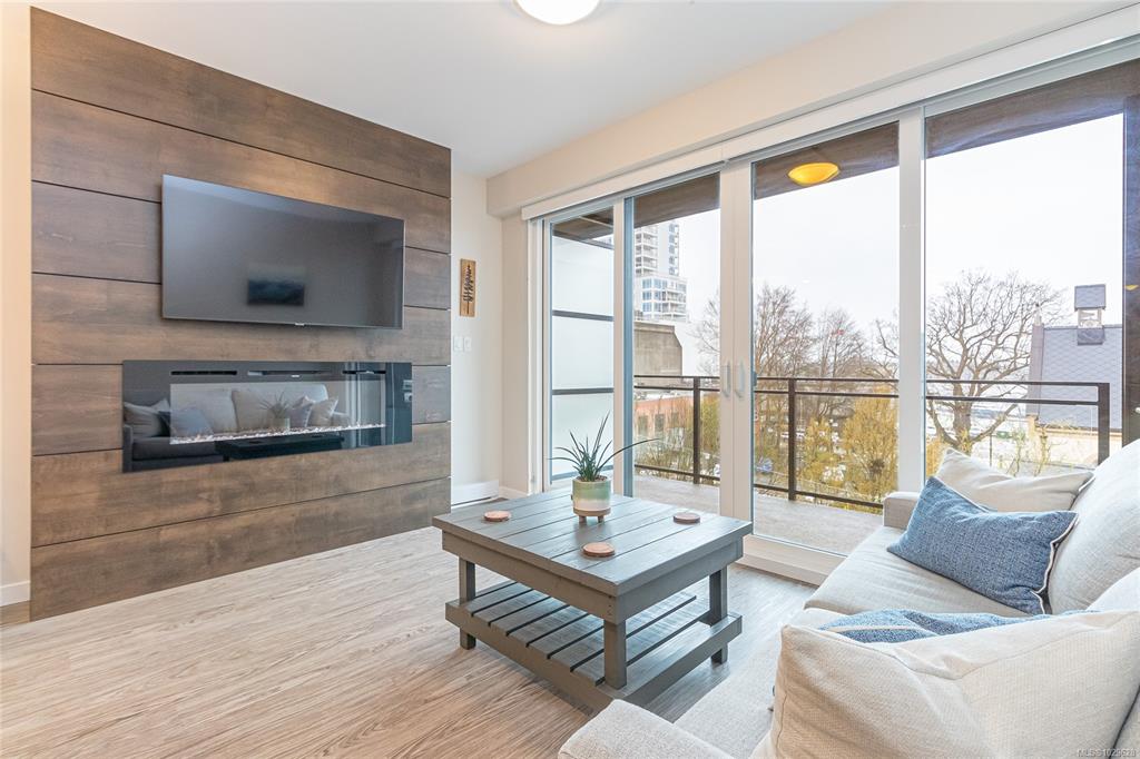 MODERN CONDO WITH WATER VIEWS! Welcome to this beautifully 1 bedroom, 1 bathroom condo offering floor to ceiling windows that showcase stunning water views and an abundant of natural light.The sleek, thoughtfully laid out kitchen features quartz countertops, stainless steel appliances, a spacious island, and plenty of cabinet space. The open concept livingroom includes an electric fireplace with multicolor flames and modern, wood accent wall feature. Step outside to the large covered patio, perfect for enjo...
