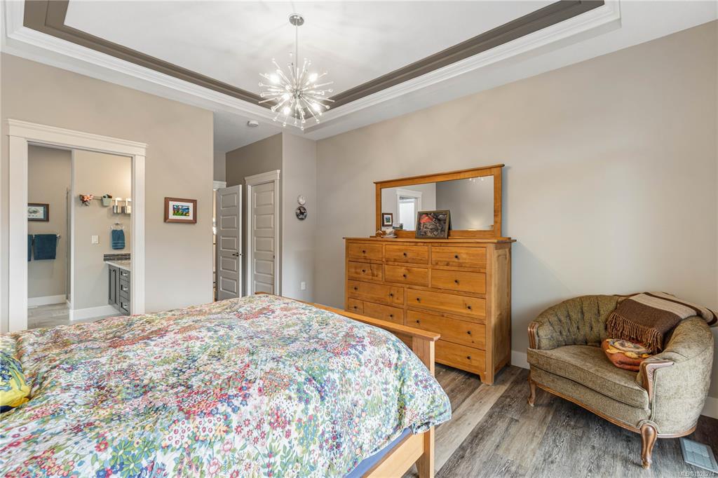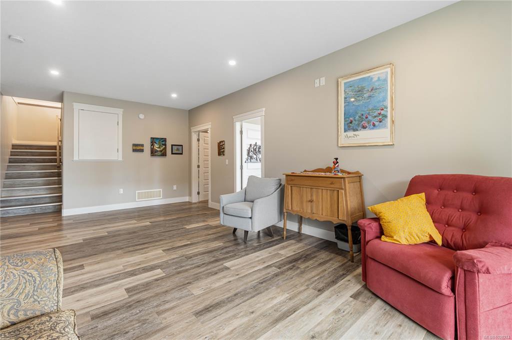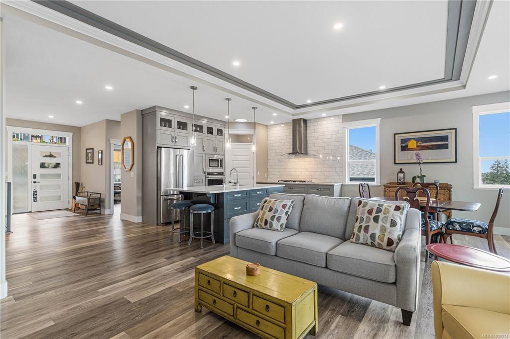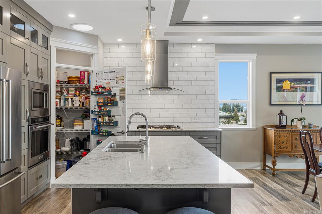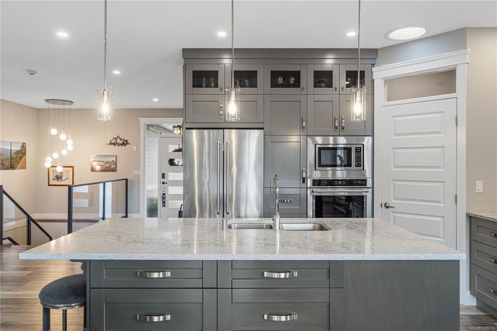 Park & mtn views, custom craftsmanship, and flexible multigenerational living in this Holland Creek Heights home near Ladysmith’s trails and amenities. Custom built in 2018, this thoughtfully designed home offers quality finishes and many extras. The main level features an open concept living space and a stunning wall of windows capturing views of the forest. The chef-inspired kitchen includes quartz counters, quality cabinetry with pull-out drawers, centre island, and a natural gas stove. The spacious prim...