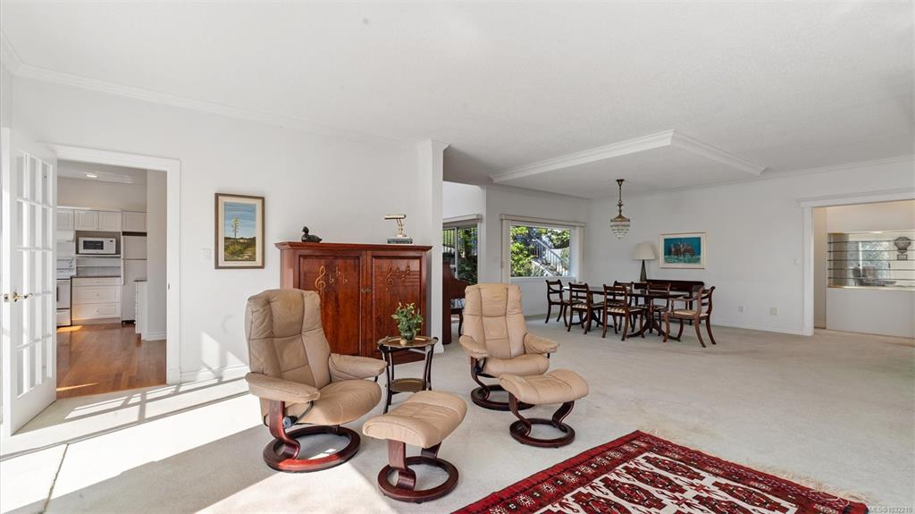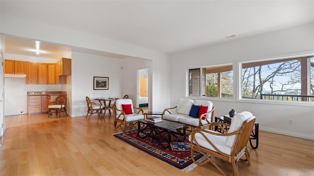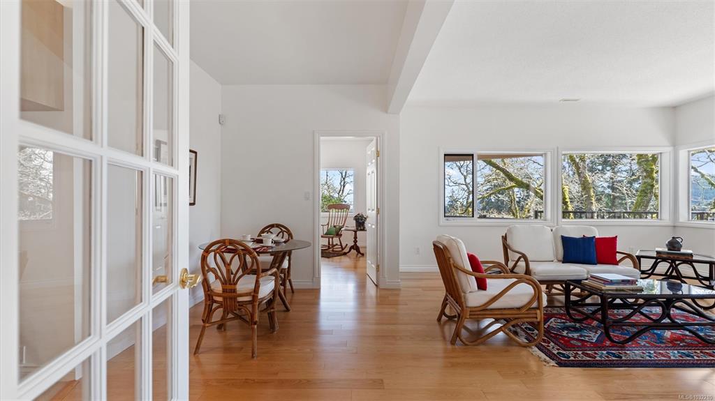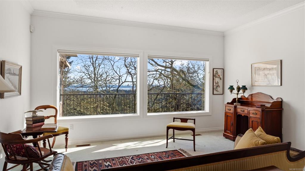 Located in a desirable upmarket neighbourhood, this elegant residence is perfectly positioned to capture stunning panoramic views of the ocean, the lush mature trees and Mt. Doug. The main house features a massive open-concept living and dining area where oversized windows frame the incredible scenery. The main level flows seamlessly onto a spectacular 642-square-foot balcony offering a private, elevated outlook. The primary bedroom is a true retreat with beautiful views, a generous walk-through wardrobe, a...