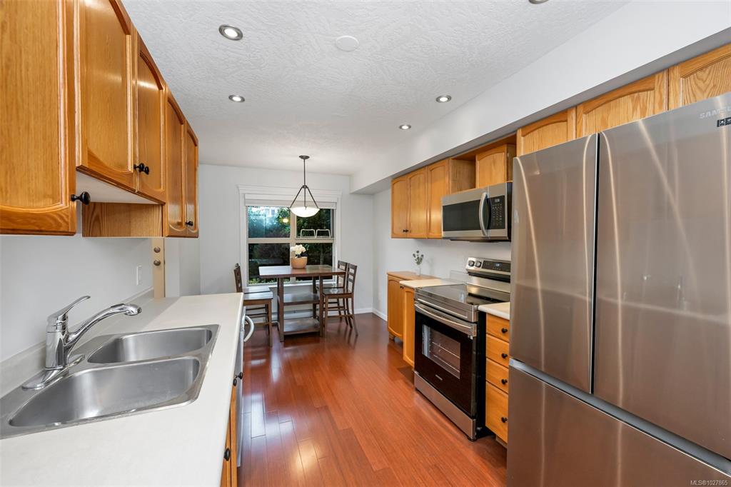 You'll love the feeling of this immaculate townhome the moment you enter, especially the garden views from large windows in the living room. The gas fireplace adds to the comfort of the large living and dining room, the kitchen features an extra dining area and newer appliances. There's nothing to do but move in and enjoy. Sparkling clean 3 bedrooms and 2 bathrooms, space for a home office, room for guests and children, and secure underground PARKING FOR 2 VEHICLES. Recent updates include new carpet, fres...