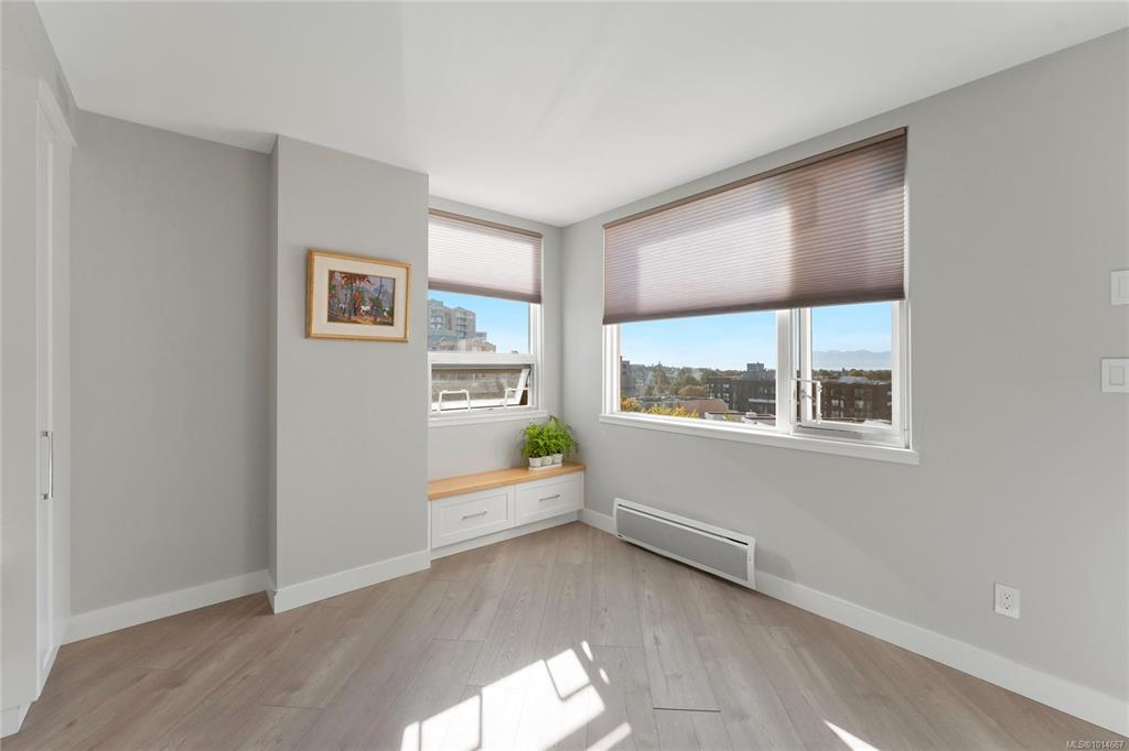 Sophisticated and stylish, this fully renovated south-facing 2-bedroom at 930 Yates offers an elevated city lifestyle with sweeping views of the ocean, Olympic Mountains and skyline. Interiors by Villamar combine luxury and function, highlighted by a chef’s kitchen with premium Miele appliances - including a built-in espresso machine, induction cooktop with pot-filler, and Liebherr fridge, set against a herringbone backsplash. Wood cabinetry, custom pantry, soft-close doors, and elegant built-ins maximize s...