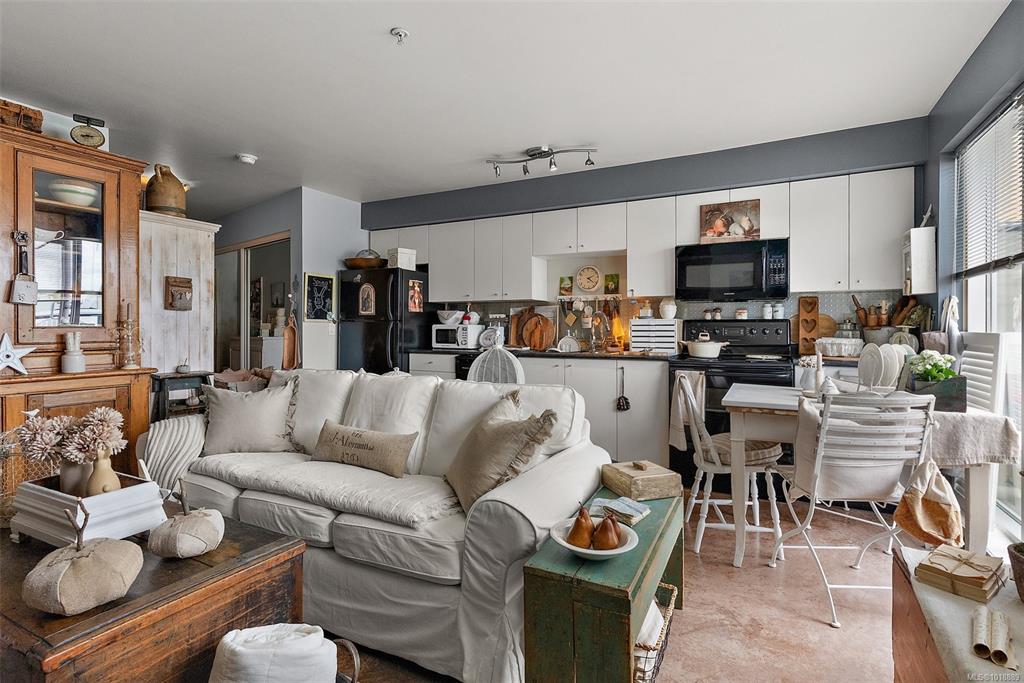 Experience the vibrant energy of Downtown Victoria in this modern, open-concept condo perfectly positioned for walkable city living. With polished concrete floors, a natural gas fireplace, and sleek architectural design, this unit offers an industrial-chic vibe with all the comforts of home. Enjoy thoughtful features like in-suite laundry, secure bike storage, a private storage locker, and access to a spacious communal rooftop patio—ideal for relaxing or entertaining. The open balcony extends your living sp...