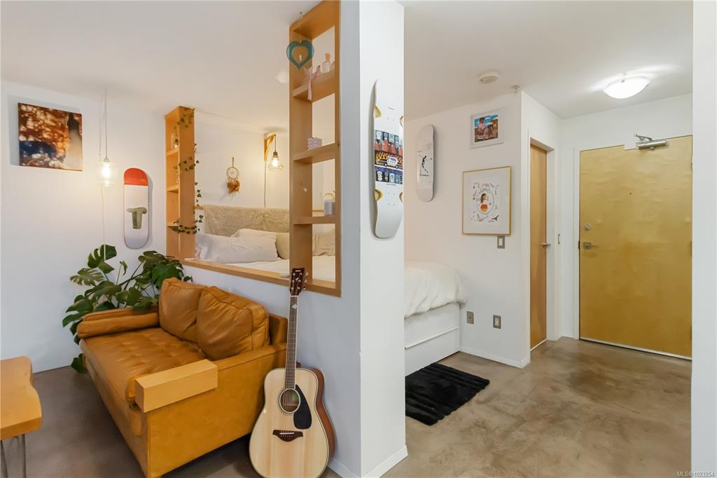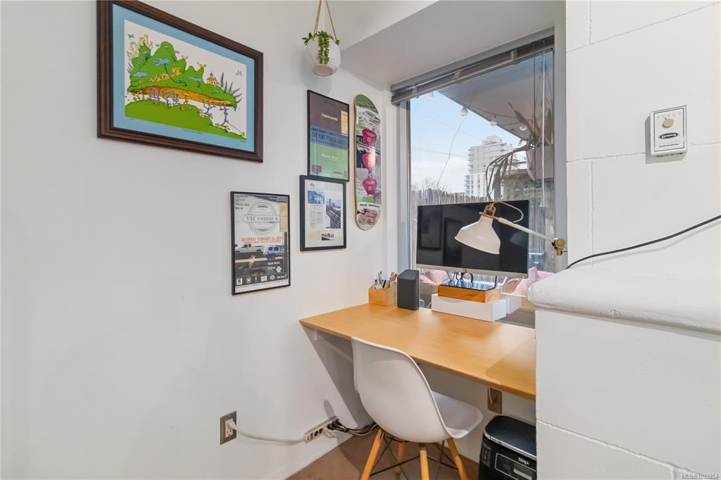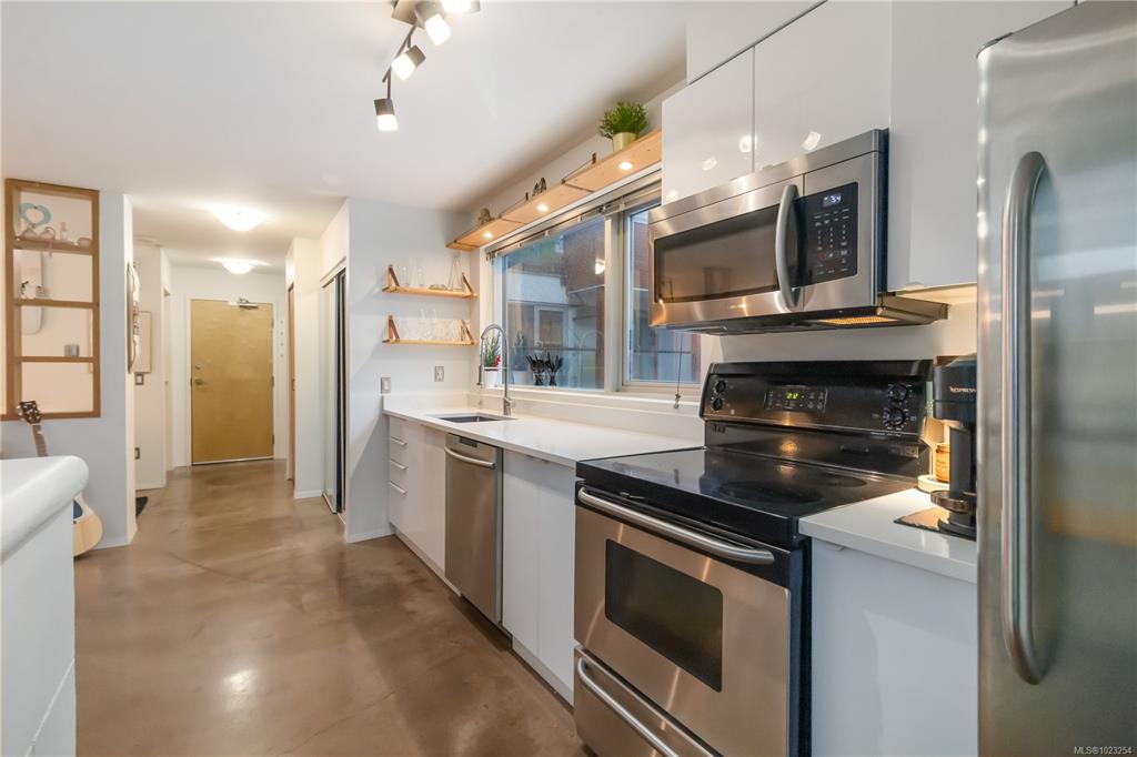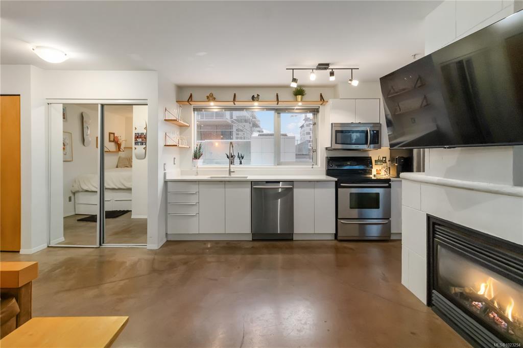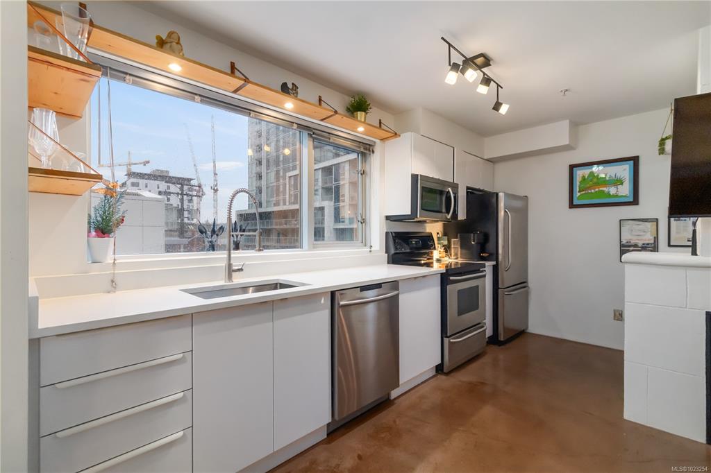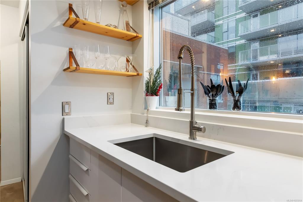 Unbeatable value in the heart of downtown Victoria, and truly one of a kind. This beautifully updated studio at The Urban stands apart with its modern, clean design and exceptional use of space. Quartz counters, stainless steel appliances, and a custom built-in desk with a window directly in front create a functional work-from-home or study space. Windows on two sides of the unit create a bright and open feel. The bathroom has been tastefully updated with a modern vanity and magazine-worthy finishes. In-sui...