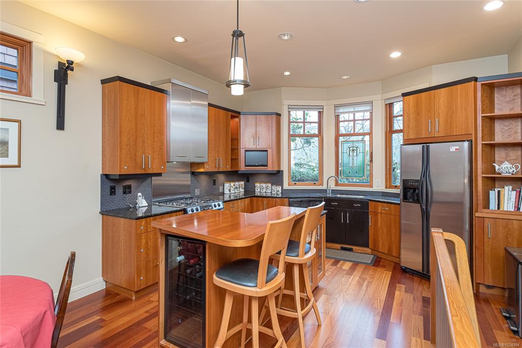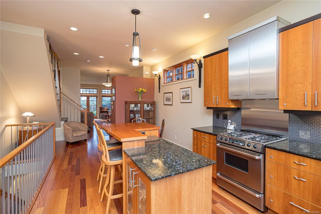 Enjoy luxurious downtown Victoria living at the award winning Terra Rose, built by Abstract Developments. A private enclave of 6 townhomes overlooking heritage greenspace. An oasis within the city. Enter through a private breezeway surrounded by mature landscaping & custom walkway lighting. Over 2000 sq. ft. of elegant living with 3 bedrooms and 4 bathrooms. Quality finishings including 10' ceilings, cherry wood floors, custom wood & stainless appliances, granite counters, wine fridge, built in cabinetry, i...