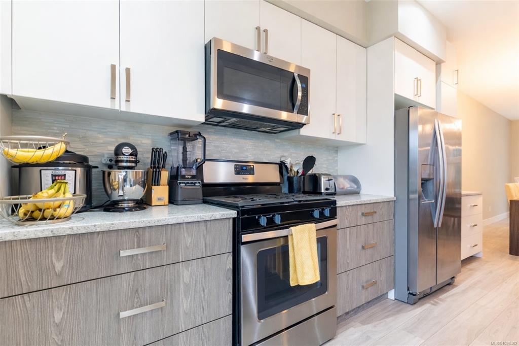 Welcome to this modern, well-maintained three-level townhome offering a functional layout, stylish finishes, and great outdoor space in a convenient Westshore location. The entry level features a single-car garage with room for storage, a home gym, or workshop, plus under-stair storage. Enjoy access to the Galloping Goose Trail and nature views across from the dog park at Willing Park. The bright main level offers 9 foot ceilings, an open-concept kitchen, dining, and living area with quartz countertops, sta...