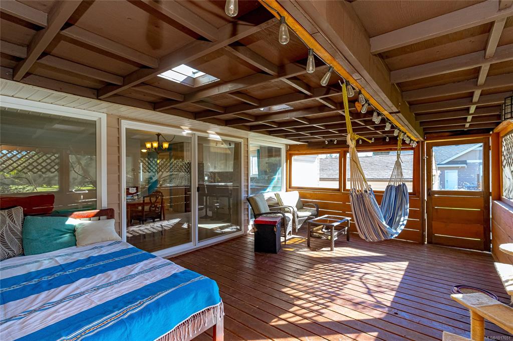 Your Private Paradise Awaits! Nestled just minutes from downtown Chemainus, lovingly maintained 2-bed 1-bath rancher offers peace, privacy & endless potential on a level 0.72-acre lot backing onto green space. Roof replaced 2017. Inside enjoy modern updates including thermal windows, heatpump (2020) & cozy new wood-burning insert (2020). Open plan living area features new kitchen - cupboards/counters & center island (2022), large windows & sliding door leading to a covered patio, perfect for indoor-outdoor ...