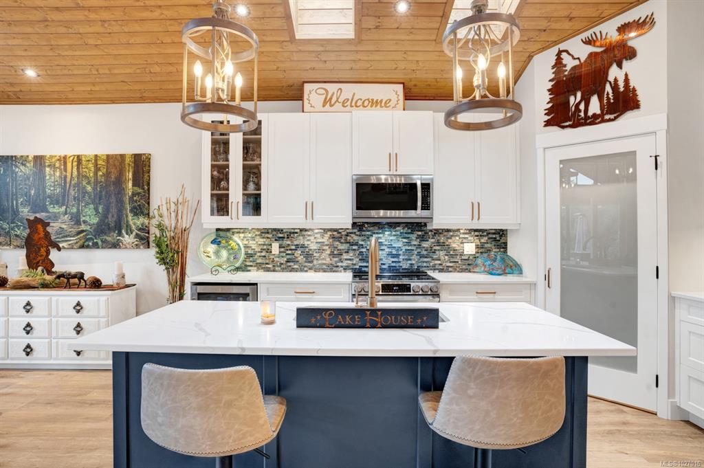 Custom home w/ lake views built in 2022 in sought after Woodland Shores & priced below assessed value, + SPEC tax exempt! (Buyer to verify). Main floor features 14-foot exposed wood vaulted ceilings that flow to covered outdoor southeast-facing sun deck. Main level of this home boasts a generously sized primary bedroom w/ walk-in closet & a spa-like 5-piece ensuite. Indoor-outdoor living w/ open concept kitchen, dining & main living room transitioning out to massive deck space. Gourmet kitchen features quar...