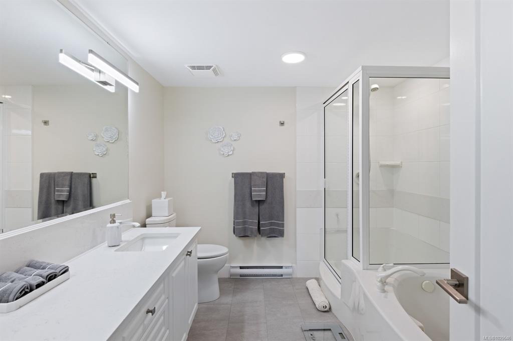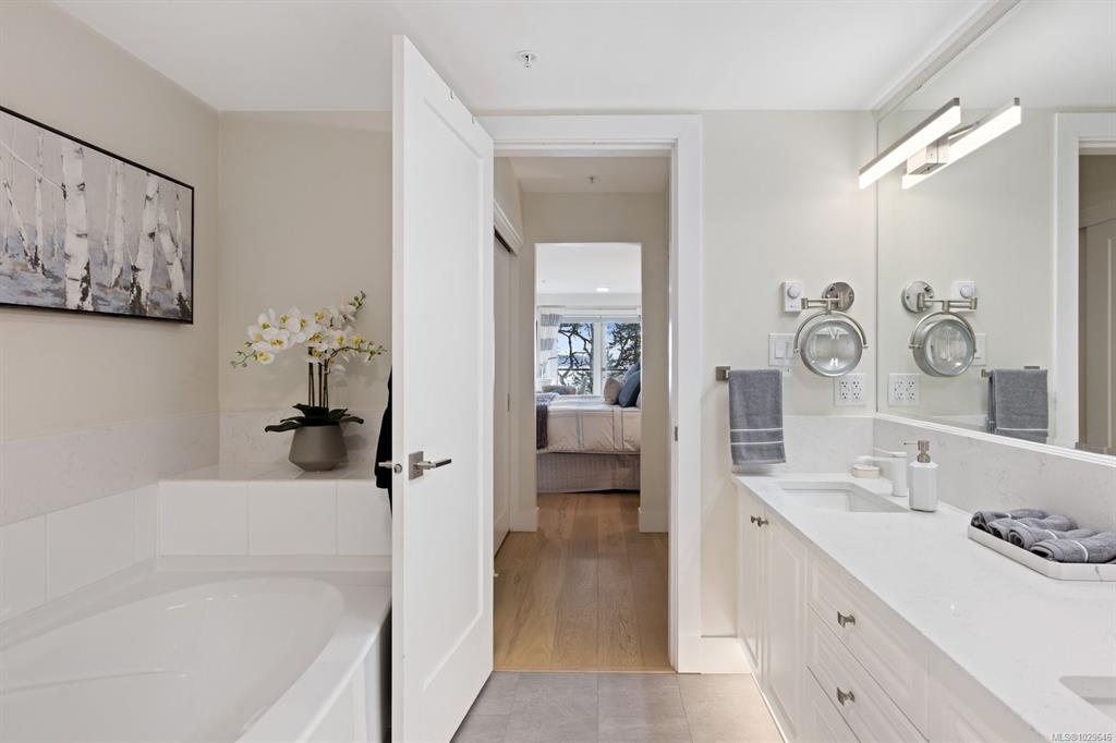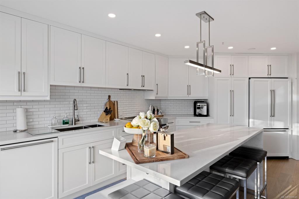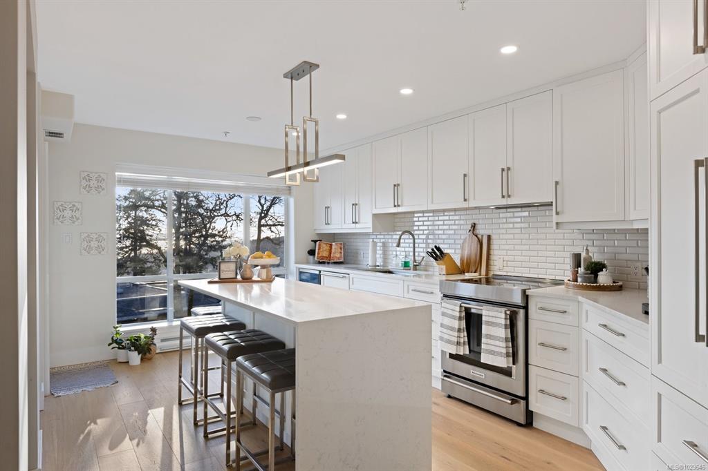 Set within the sought-after Boulderwood Rise community, this beautifully renovated 2 bed, 2 bath residence offers over 1,750 sq.ft. of refined living w/ sweeping ocean & mountain views from nearly every room. Hardwood flooring flows seamlessly throughout the bright, open-concept layout, anchored by a chef-inspired kitchen w/ quartz countertops & generous storage. The spacious living & dining areas open to the balcony & feature a cozy natural gas fireplace, creating an inviting space for both everyday living...