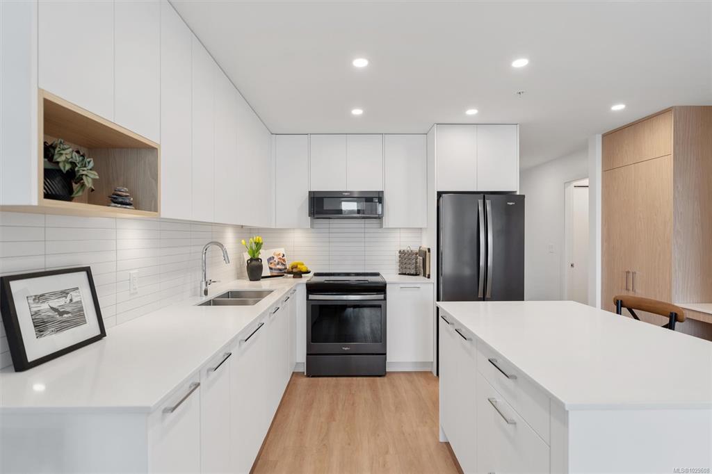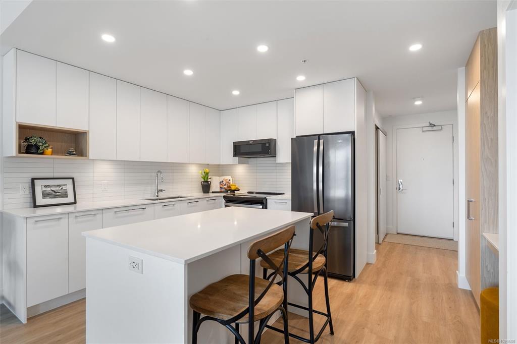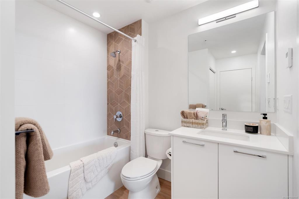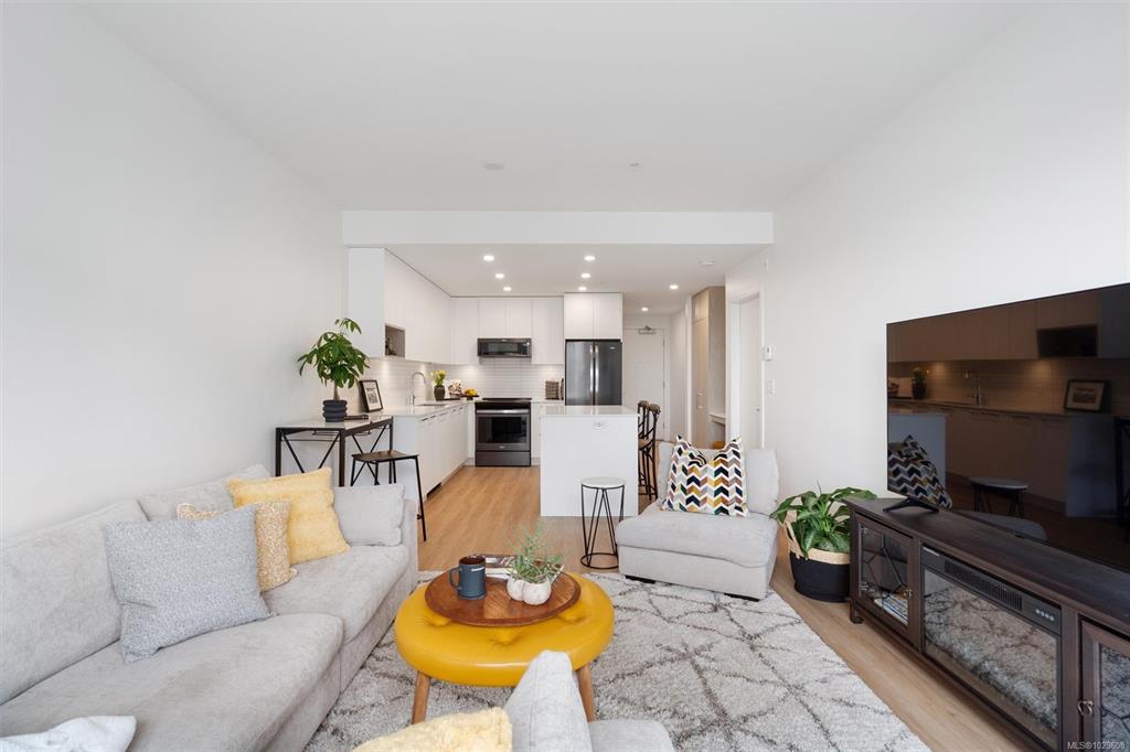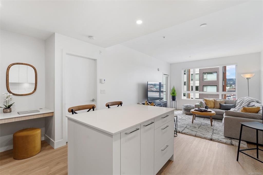 Experience modern living in this bright & stylish 1-BED plus DEN condo, ideally situated on the 4th floor in one of Langford’s most sought-after communities. With an open-concept layout, this home is filled with natural light and its elevated position offers quiet enjoyment above the hustle and bustle. The gourmet kitchen features quartz countertops, SS appliances & ample cabinetry. Luxury vinyl flooring runs throughout while Low-E windows enhance year-round comfort. The bathroom offers a deep soaker tub fo...