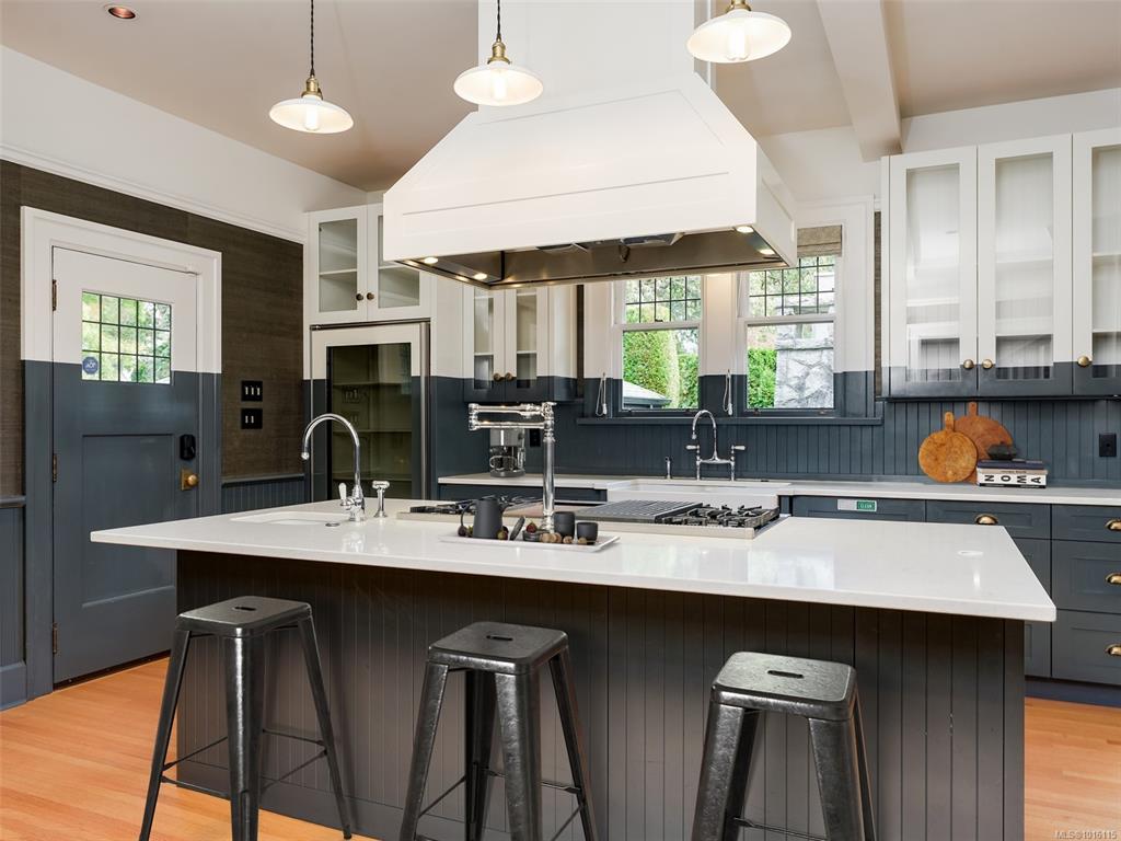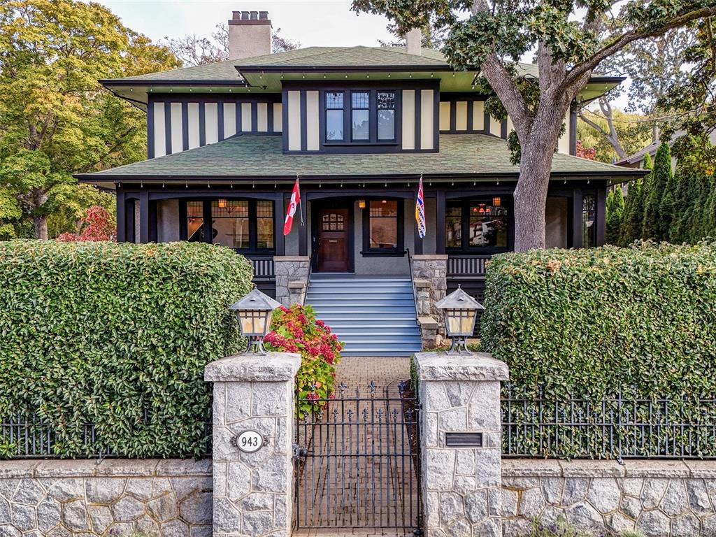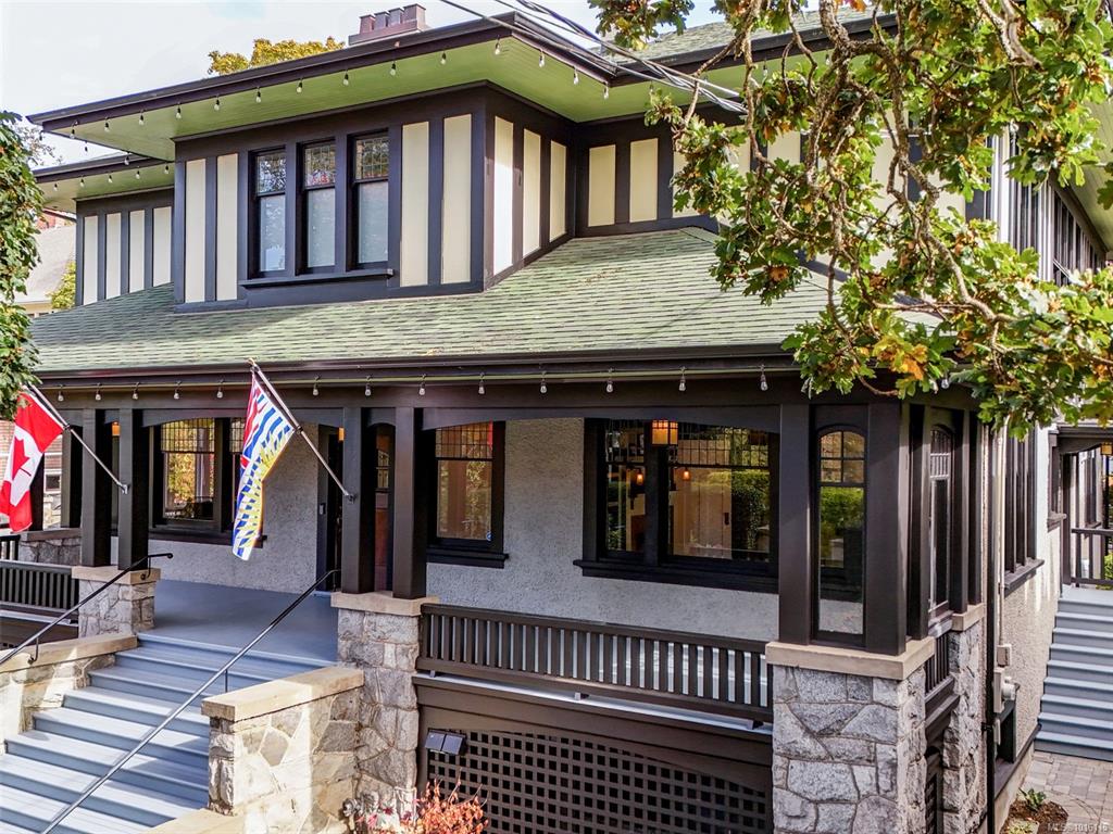 One of Victoria's most photographed houses is this handsome standout built in 1912 by architect Samuel Maclure. The quality has stood the test of time and the home was completely restored and enhanced in 2009. A deliberate plan of 5343' flows well and features 6 bedrooms, 7 bathrooms, 7 fireplaces and 2 kitchens. The essence is restrained elegance and lends flair to entertaining starting at the stone gates to the welcoming veranda. Hardwood and tile throughout, with original stained glass and wainscotting. ...