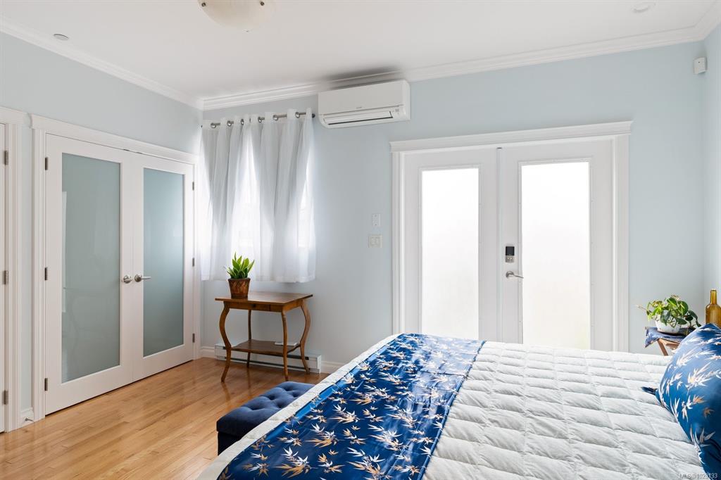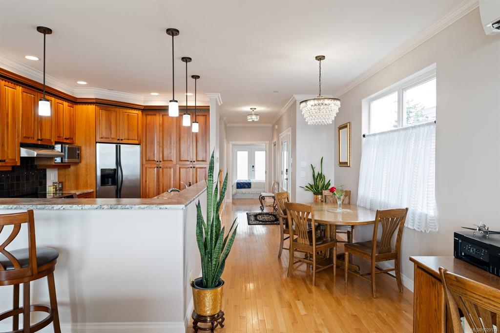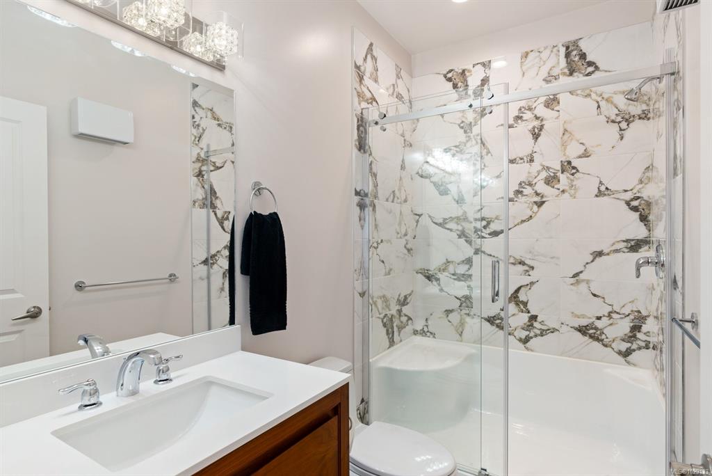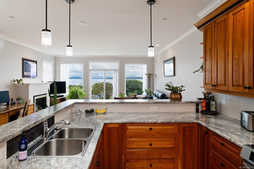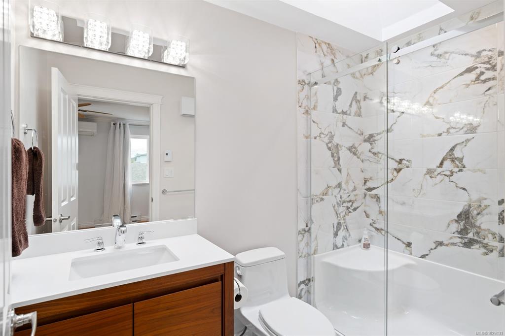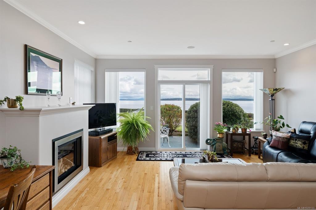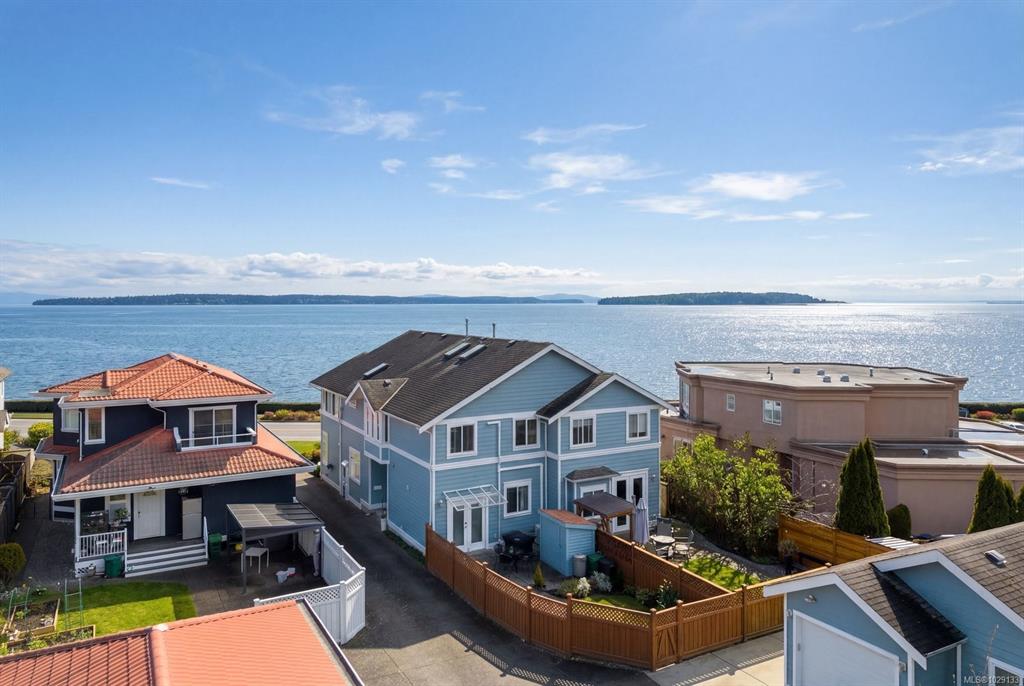 This freshly updated 2,000 sf half-duplex boasts spectacular uninterrupted ocean, island and mountain views. The sun-filled main level features open kitchen, living and dining rooms with a new Valor gas fireplace, hardwood floors and air conditioning. This level also has a renovated 3-piece bathroom and a bedroom/office that opens to the private west facing fenced backyard. Upstairs offers a primary bedroom with a fireplace and a/c, a flex room (that can easily be added back to the primary bedroom), full en...