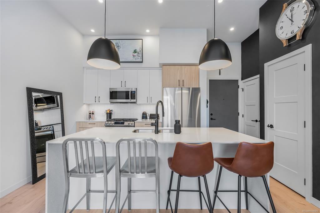Step into refined West Shore living with this nearly new, designer-inspired two-bedroom home. Towering 12–14-foot ceilings enhance the sense of space, while one of the building’s largest terraces invites effortless entertaining or quiet morning coffee in the sun. Every element speaks to quality and intention. The gourmet kitchen showcases quartz countertops, a tiled backsplash, and a full stainless steel appliance suite—including a gas range for the home chef. Ductless split heat pumps provide year-round...