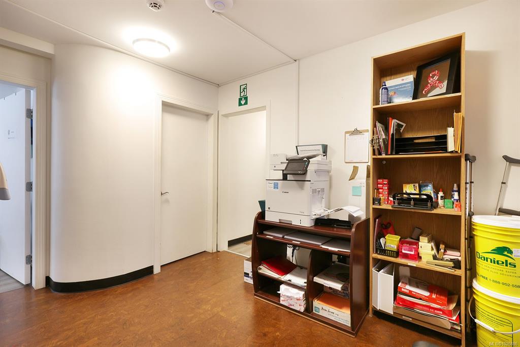 Unbeatable downtown Courtenay location with exceptional flexibility and potential! This 3,781 sqft C-1 zoned building features 2 commercial and 1 residential units, 9 on site parking stalls, rear lane access, and abundant street parking. The primary commercial space offers an accessible entrance, bright reception area, 6 private offices, and a spacious meeting room with a cozy gas fireplace. The second unit, with both front and rear access, includes a functional layout with reception, 2 offices, a kitchenet...