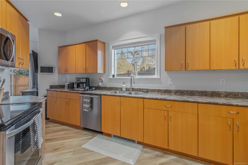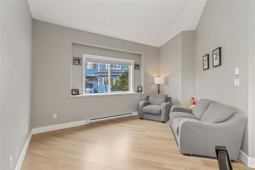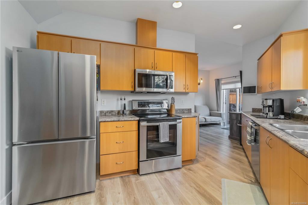 Two-level end-unit townhome with private backyard in a family-friendly complex! This well-designed 3-bed, 3-bath home with garage in an infinitely walkable Langford hub offers the feel of a single-family home without the price tag. The bright main floor features an oversized kitchen with stainless steel appliances, a dining area, and a spacious living room with a soaring 13-ft ceiling. A separate family room adds flexibility to create a media room, home office, or play space which opens up to your own perso...