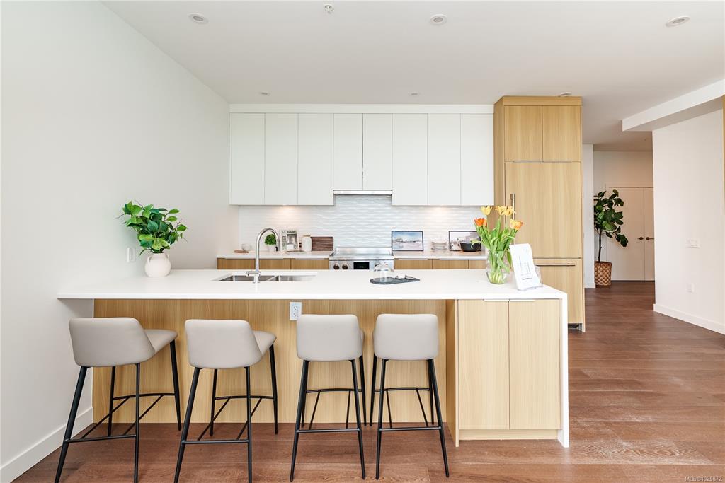 NO GST to Valentine's Day. The pinnacle of coastal living in Unit 401 at The Rise on Fifth, a top-floor north-east corner penthouse with magnificent ocean and mountain views. Thoughtfully designed, this bright and airy residence offers an open concept layout filled with natural light. The gourmet kitchen features elegant quartz waterfall countertops and a built-in Fisher and Paykel appliance package. Step outside to a 777 sq ft deck with fire pit, where breathtaking coastal scenery creates an unforgettable ...